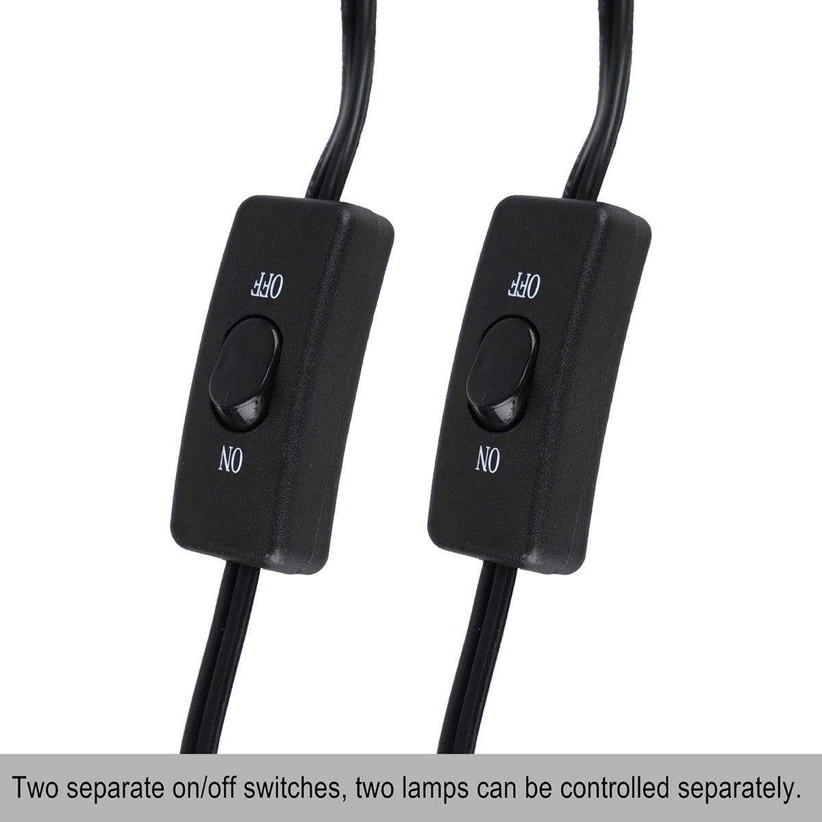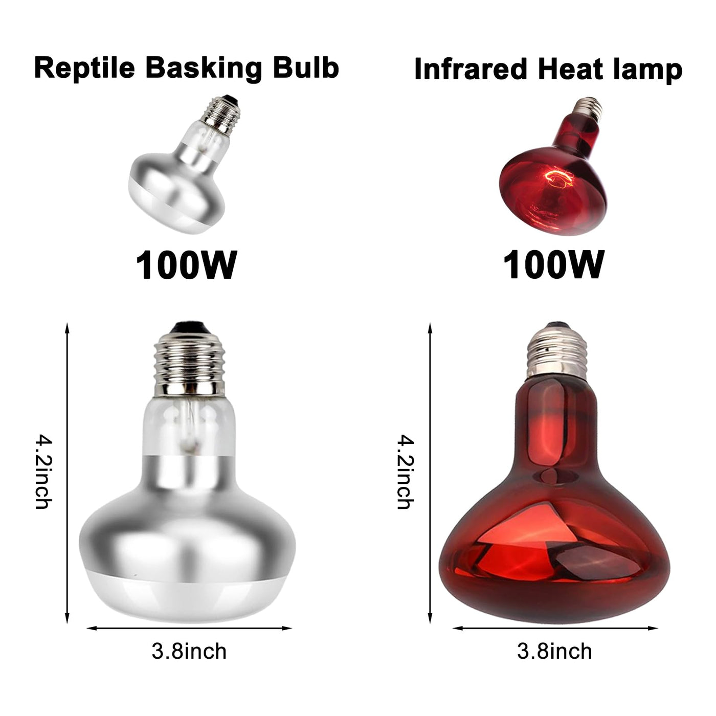 DXOPHIEX 15inch dual reptile heat lamp fixture is made of 0.8mm thickness aluminum. It is well polished to make sure very good reflective effect. The 0.8mm thick aluminum makes it very strong, sturdy and not easy to get hot. It can be equipped with two bulbs up to 150W at the same time. You can control each bulb by the separate switch. It is quite convenient to create suitable environment by equipping different bulbs for your pets. You can simply place it on the lid of reptile terrarium or you can hang it up with a reptile heat lamp stand. In addition, this dual dome Lamp fixture includes a 100W basking bulb and a 100W infrared light bulb. The reptile basking bulb is designed to mimic natural sunlight, elevating the overall air temperature within the terrarium, and providing a habitat for reptiles that closely resembles their natural environment. It aids in stimulating appetite, digestion, and metabolism in reptiles. The infrared heat lamp bulb provides soft illumination and has a low visual impact at night, ensuring it does not disrupt the normal activity cycle of reptiles. It raises the overall air temperature inside the terrarium, offering your pets a warm and comfortable environment during nighttime.