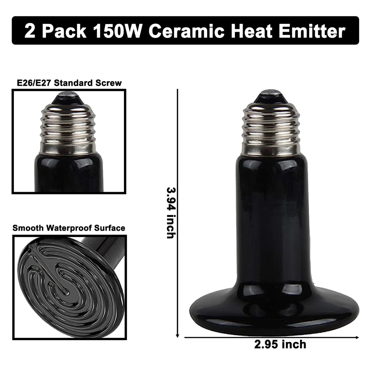 The Dxophiex 15Inch Dual Reptile Heat Lamp Fixture Is Made Of 0.8Mm Thick Aluminum, Which Is Well Polished To Ensure A Very Good Reflective Effect. The 0.8Mm Thickness Makes The Reptile Heater Very Strong, Sturdy, And Resistant To Heating Up. It Can Accommodate Two Bulbs Of Up To 150W Each Simultaneously. Each Bulb Can Be Controlled By Its Separate Switch, Providing Convenience When Creating A Suitable Environment For Your Pets By Equipping Different Types Of Bulbs. The Fixture Can Be Easily Placed On The Lid Of A Reptile Terrarium, Or It Can Be Hung Up With A Reptile Heat Lamp Stand. This Dual Dome Lamp Fixture Also Includes Two 150W Ceramic Heat Lamps. Made Of Durable Ceramic Elements, The Ceramic Heat Emitters For Reptiles Offer Excellent Heat Radiation Without Emitting Any Light, Ensuring They Won'T Disturb The Reptiles' Sleep Cycle.