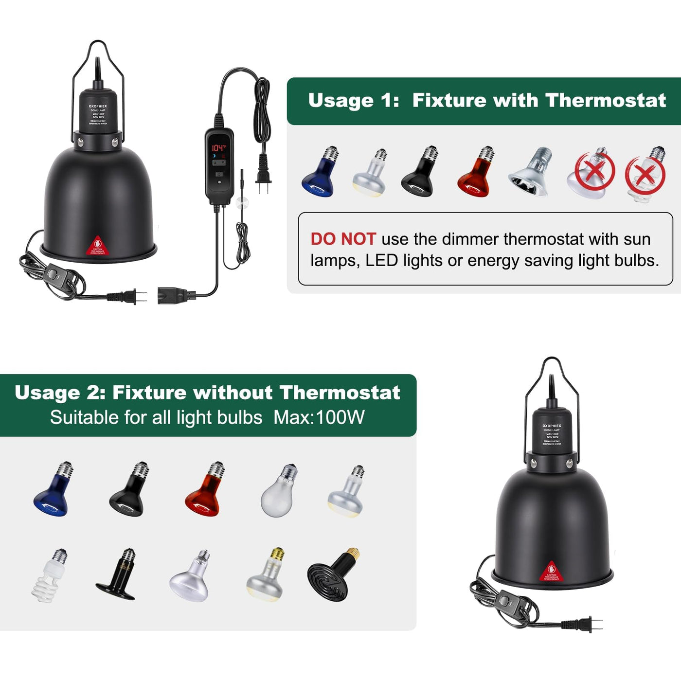 Dxophiex 5.5 Inch Reptile Heat Lamp Fixture With Dimming Thermostat,Reptile Light Fixture Max 100W,Thermostat With Temperature C