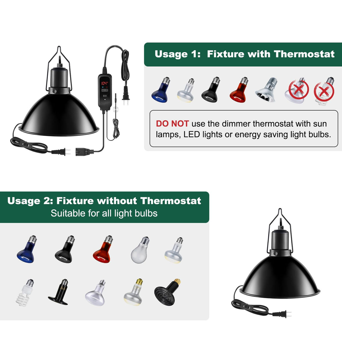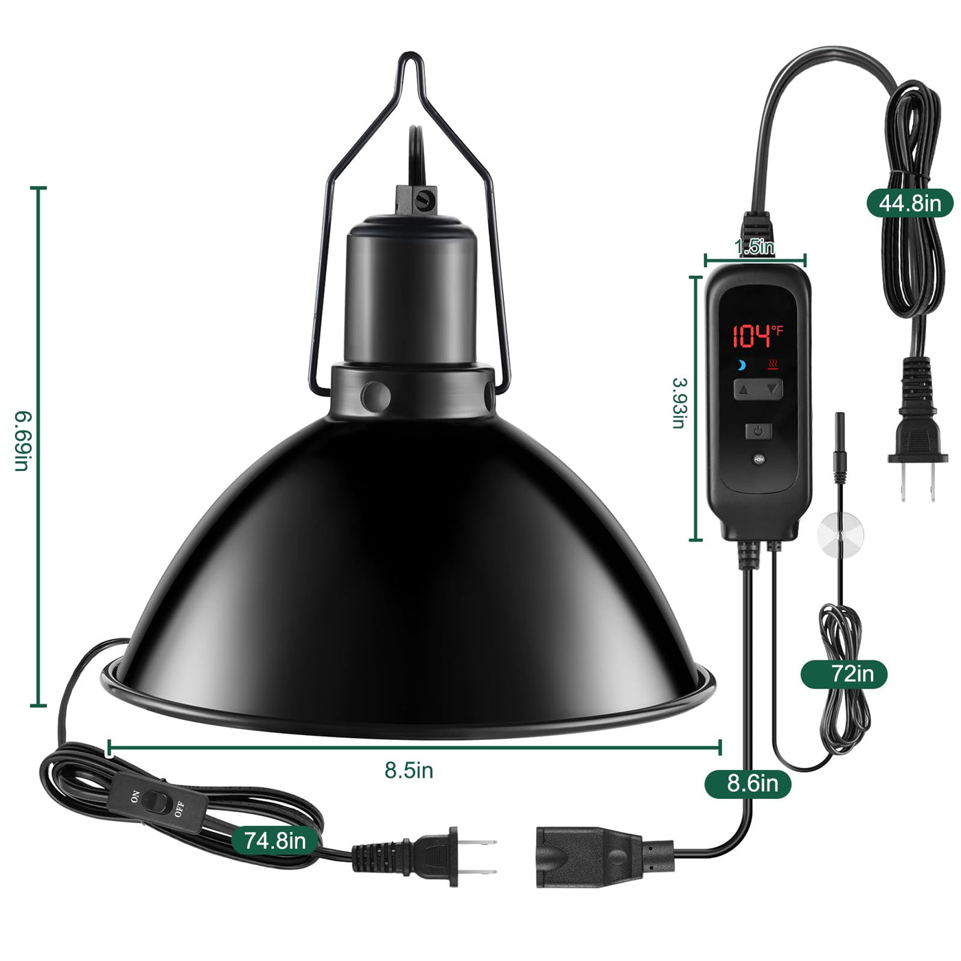 Dxophiex 8.5 Inch Reptile Heat Lamp Fixture With Dimming Thermostat,Reptile Light Fixture Max 150W,Pid Inverter Thermostat With