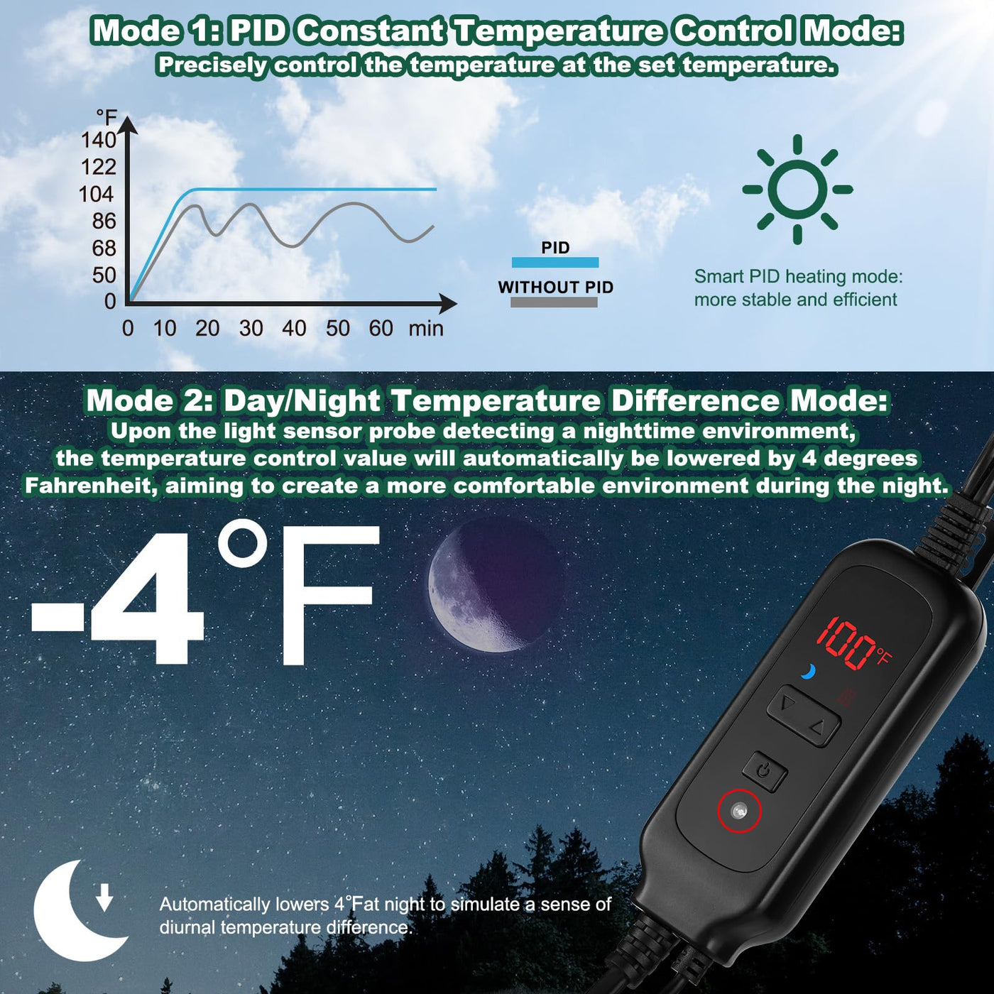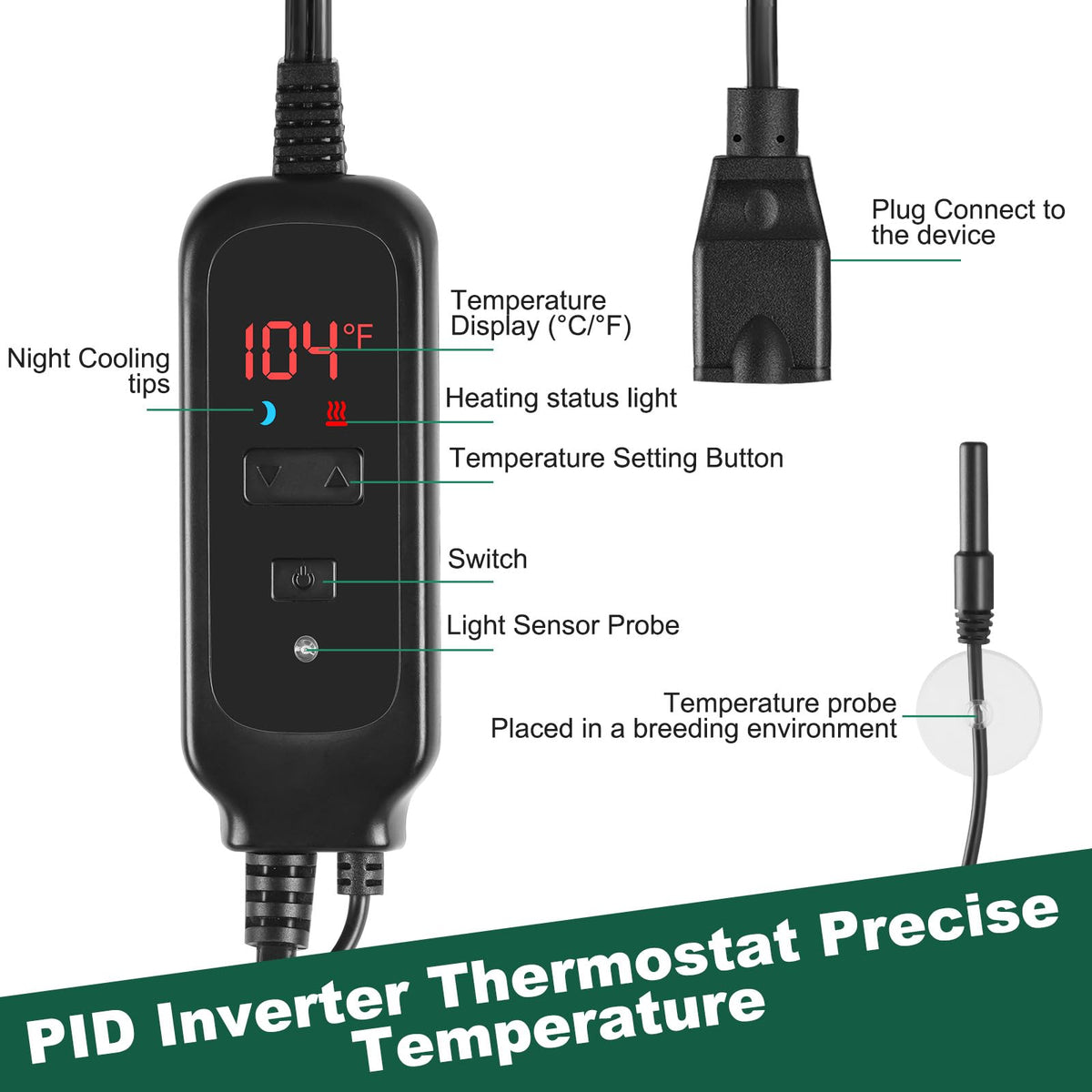 Dxophiex Reptile Light Fixture With Dimming Thermostat Integrates Illumination And Temperature Control,Combines Illumination And Heating In One, Utilizing The Intelligent Pid Heating Mode Combined With A Light-Sensitive Probe To Accurately Control The Temperature. It Ensures That The Heat Lamp For Lizard Always Maintains The Ideal Range Of 20C To 45C (68F To 113F).Supporting Free Switching Between Celsius And Fahrenheit Temperature Units, Temperature Management Becomes More Intuitive. The Bearded Dragon Light Fixture Is Etl Certified, Compatible With E26 Lamp Bases, And Can Handle Power Up To 150W. The Reptile Dome Light Fixture Is Made Of High-Quality Aluminum Alloy To Enhance Brightness And Heat Reflection, Boosting Uva/Uvb Light Source Output. Additionally, The High-Precision Digital Temperature Controller Monitors And Adjusts The Temperature In Real-Time, Making It Easy To Operate And Widely Suitable For Bearded Dragons, Lizards, Chicks,Turtles, Hermit Crabs, Frogs, Snakes, Leopard Geckos, Ball Pythons, And Other Reptiles And Amphibians.
