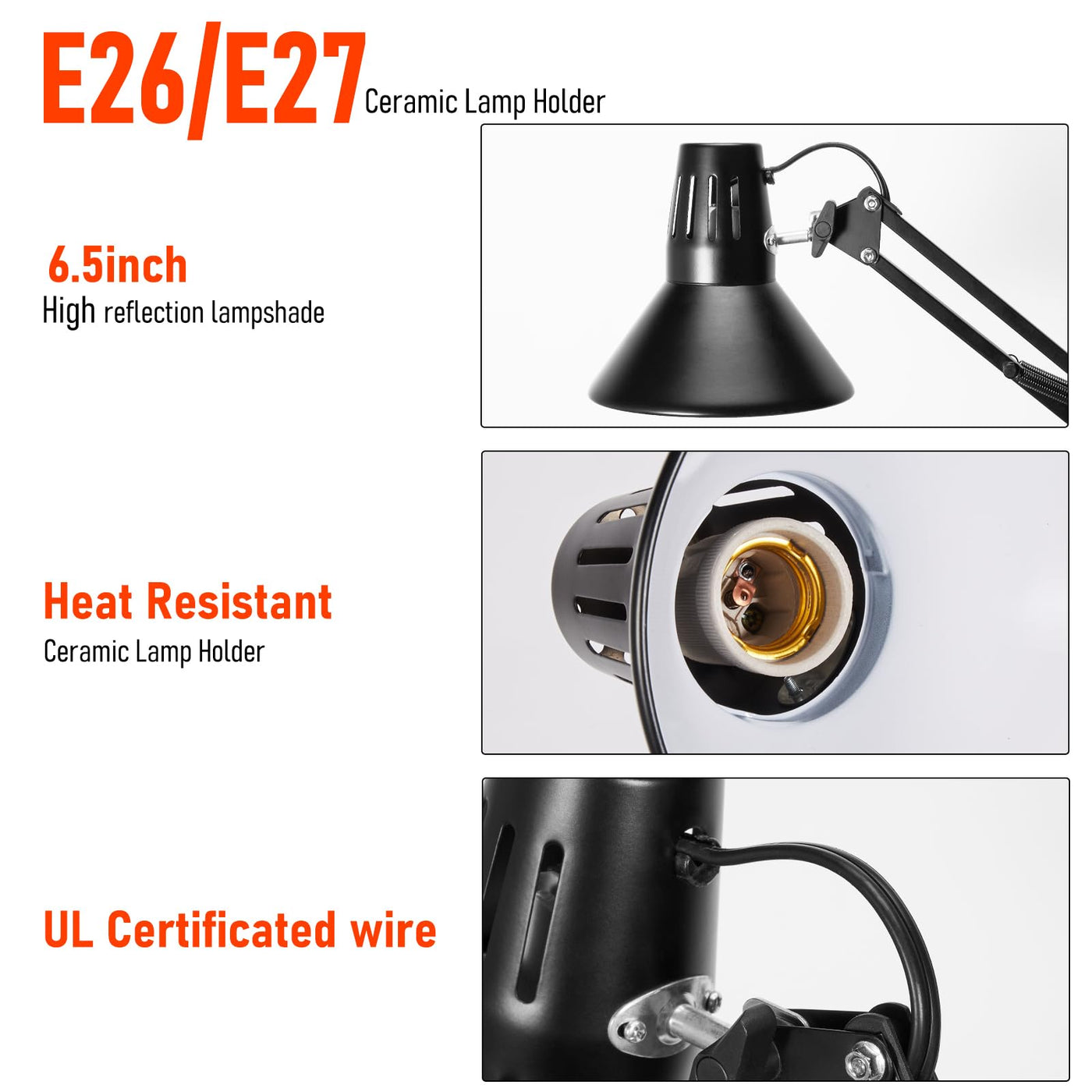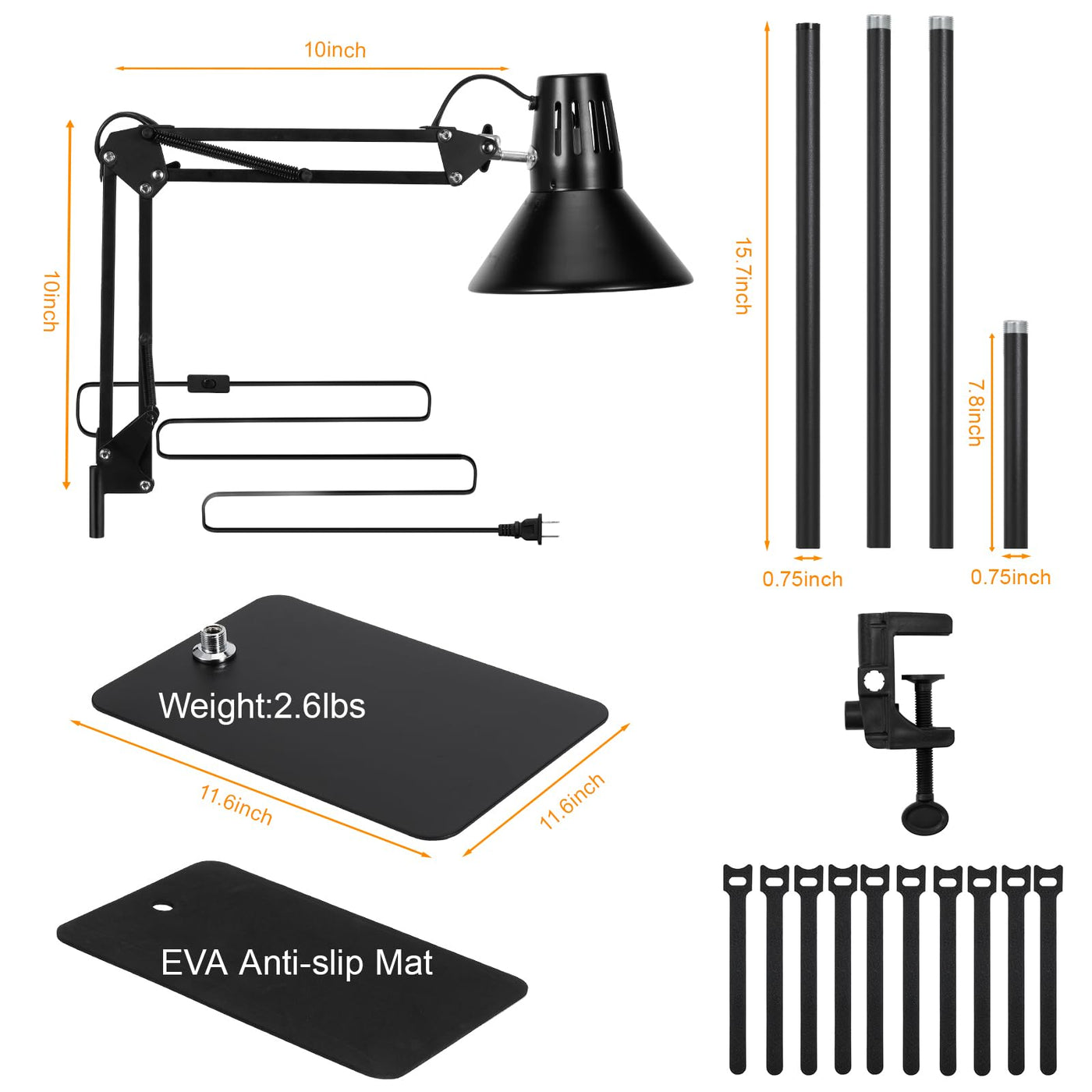 The Dxoveen Reptile Heat Lamp Fixture Is 6.5 Inches Wide And Offers High Reflectivity With Its Height-Adjustable Heat Lamp Holder And Multi-Angle Adjustable Swing Arm. Featuring Four Adjustable Connecting Rods, It Is Free To Set Six Different Heights Ranging From 17.5 Inches To 74.3 Inches,Making It Compatible With Various Sizes Of Reptile Terrarium. The Unique 180-Degree Folding Rocker Arm Makes It Easy To Adjust The Angle And Extension Width Of The Reptile Light Fixture. You Can Choose Different Bulbs To Create The Desired Light And Temperature Environment.E26/E27 Ceramic Lamp Holders Have Good Heat Resistance, Ul Certified Wires Are Safe And Durable. Making It Suitable For Most Reptile Heat Lamp Reptile Bulbs. This Reptile Heat Lamp Can Be Used For A Variety Of Reptile Pets Such As Bearded Dragons, Turtles, Geckos, Tortoises, Frogs, Chickens, Snakes, Birds, As Well As Floor Lamps Or Heat Lamp For Plants.