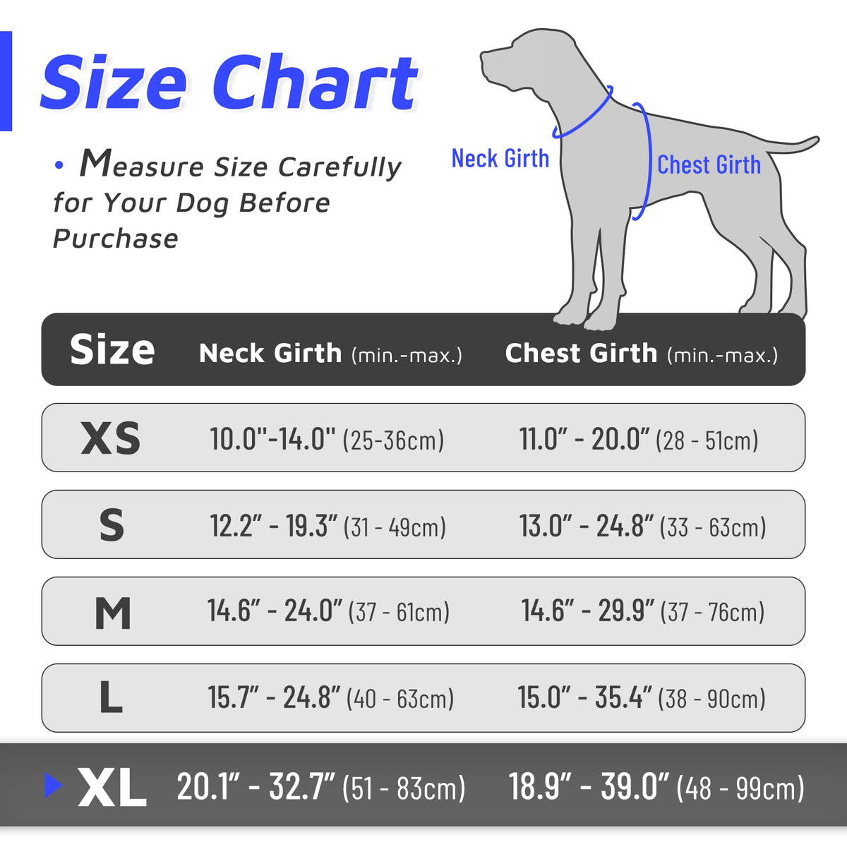 Customize your dog a nice fit Find the best fit for your dog by adjusting the slide straps with 4 buckles, two on the neck and two on the back, which can ensure simple put-on and take-off, durable and easy to wash.