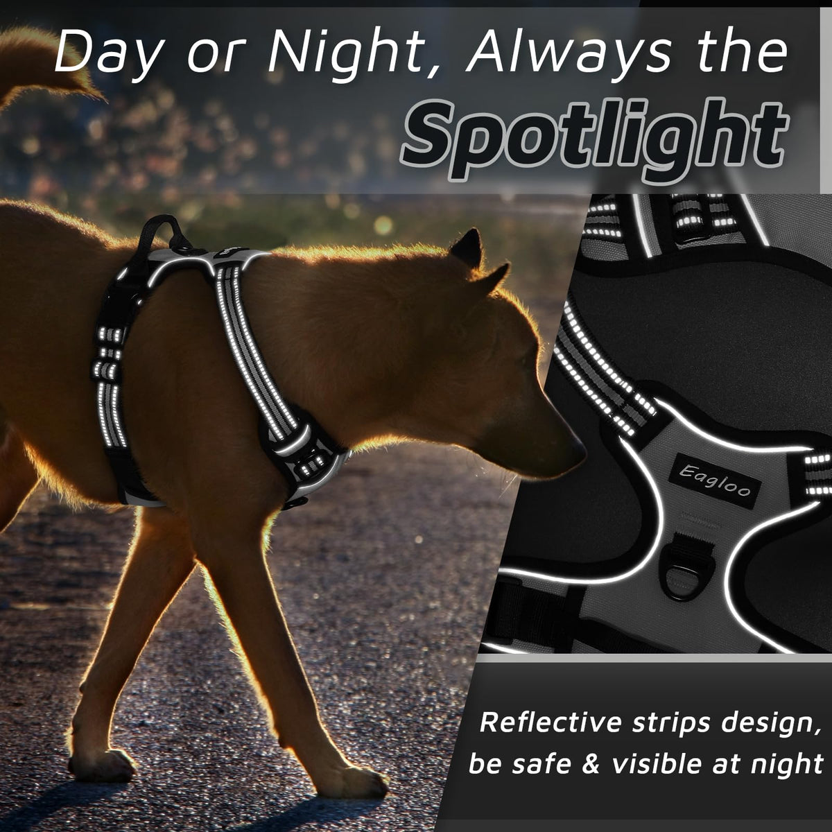 Eagloo Dog Harness Small Sized Dog, No Pull Service Vest With Reflective Strips And Control Handle, Adjustable And Comfortable For Easy Walking, No Choke Pet Harness With 2 Metal Rings, Grey, S