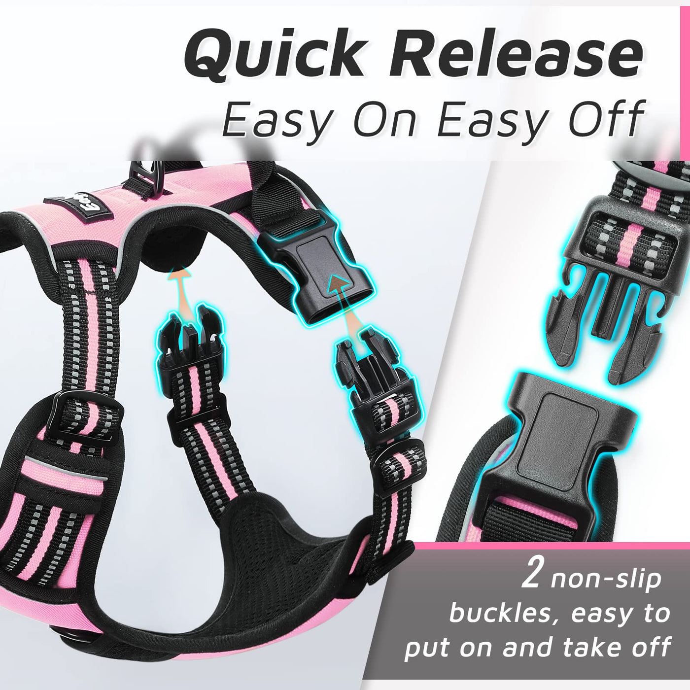 Eagloo Dog Harness Small Sized Dog, No Pull Service Vest With Reflective Strips And Control Handle, Adjustable And Comfortable For Easy Walking, No Choke Pet Harness With 2 Metal Rings, Pink, S