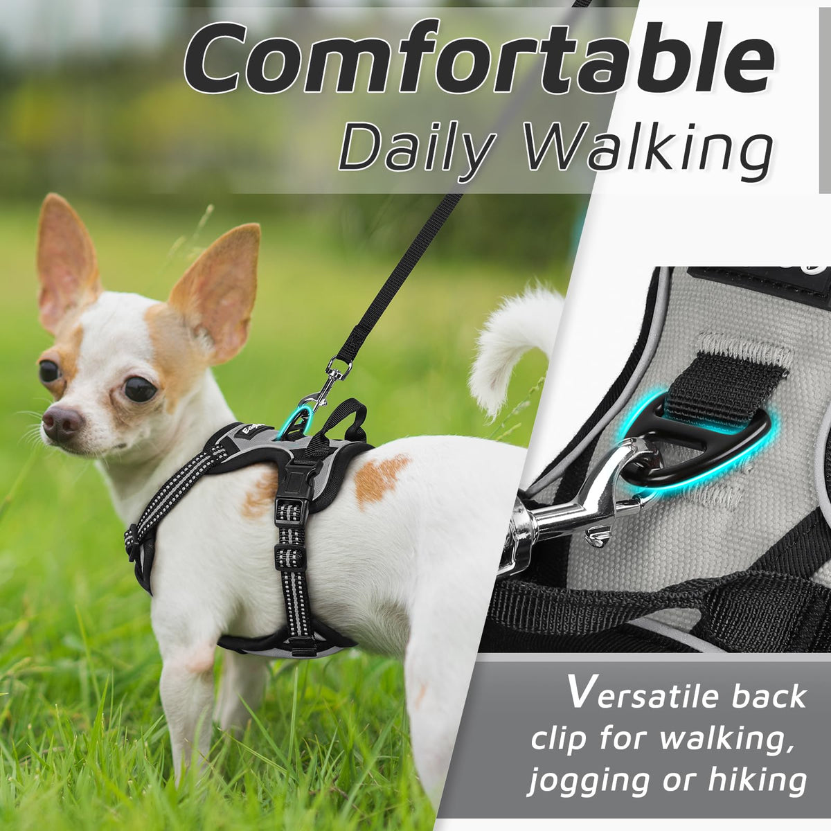 Safety Is Always First 1. Thoughtful Design Reduces Pulling Pressure On Your Dog'S Neck And Thus Prevents Choking Or Injuries When Pulling. 2. Two Leash Attachment Rings: One In The Front For No-Pull/No-Choke Feature While Walking Or Training. The Other One On The Back For Keeping Your Dog Stay At Home Or Yard. 3. Reflective Straps Allows Safe At Night Or Early Morning Walk. Customize Your Dog A Nice Fit Find The Best Fit For Your Dog By Adjusting The Slide Straps With 4 Buckles, Two On The Neck And Two On The Back, Which Can Ensure Simple Put-On And Take-Off, Durable And Easy To Wash. Comfort Is A Must Soft Padding Filled With High-Quality Nylon Makes Your Dog Love To Wear It, Breathable Material And Lightweight Construction Keep Your Dog In Optimal Comfort While Exercising Anytime, Anywhere Perfect For Daily Walking Use, Also Suitable For Various Occasions Such As Hiking, Training, Hunting, Etc., 4 Sizes For Your Selection To Give Your Dog A Stylish Outfit Tips For Pawrents Front & Back Clips: For Back V Ring, It Won'T Place Any Pressure On Your Dog'S Neck. If You Own A Dog With A Sensitive Trachea, Using A Back Clip Won'T Cause Any Pain And Discomfort At Its Neck, Suitable For Situations Like Casual Walking; For Chest O-Ring, It Gives You Better Control, Make Your Dog Learn To Heel And Can Help To Lessen A Dog'S Desire To Pull. If You Pull Back Your Dog By Front Clip, It Will Make Your Dog Turn Its Head Towards You. This Is Useful If You Want To Distract Your Four-Legged Friend From Something Scary Or Steer In A Certain Direction To Avoid A Hazard. Depending On Your Dog'S Personality And Walking Style, You May Sometimes Find Its Legs Get Tangled With Your Lead Because Of The Clip Position On The Dog'S Chest. If That'S The Case, You May Need To Use A Shorter Lead Or Let The Lead Through The Space Between Four Legs.