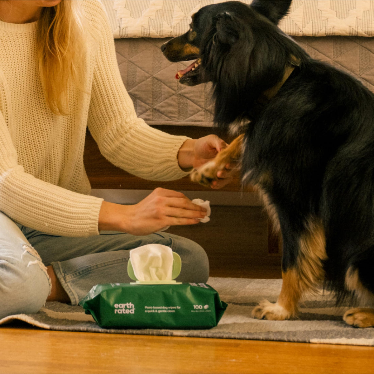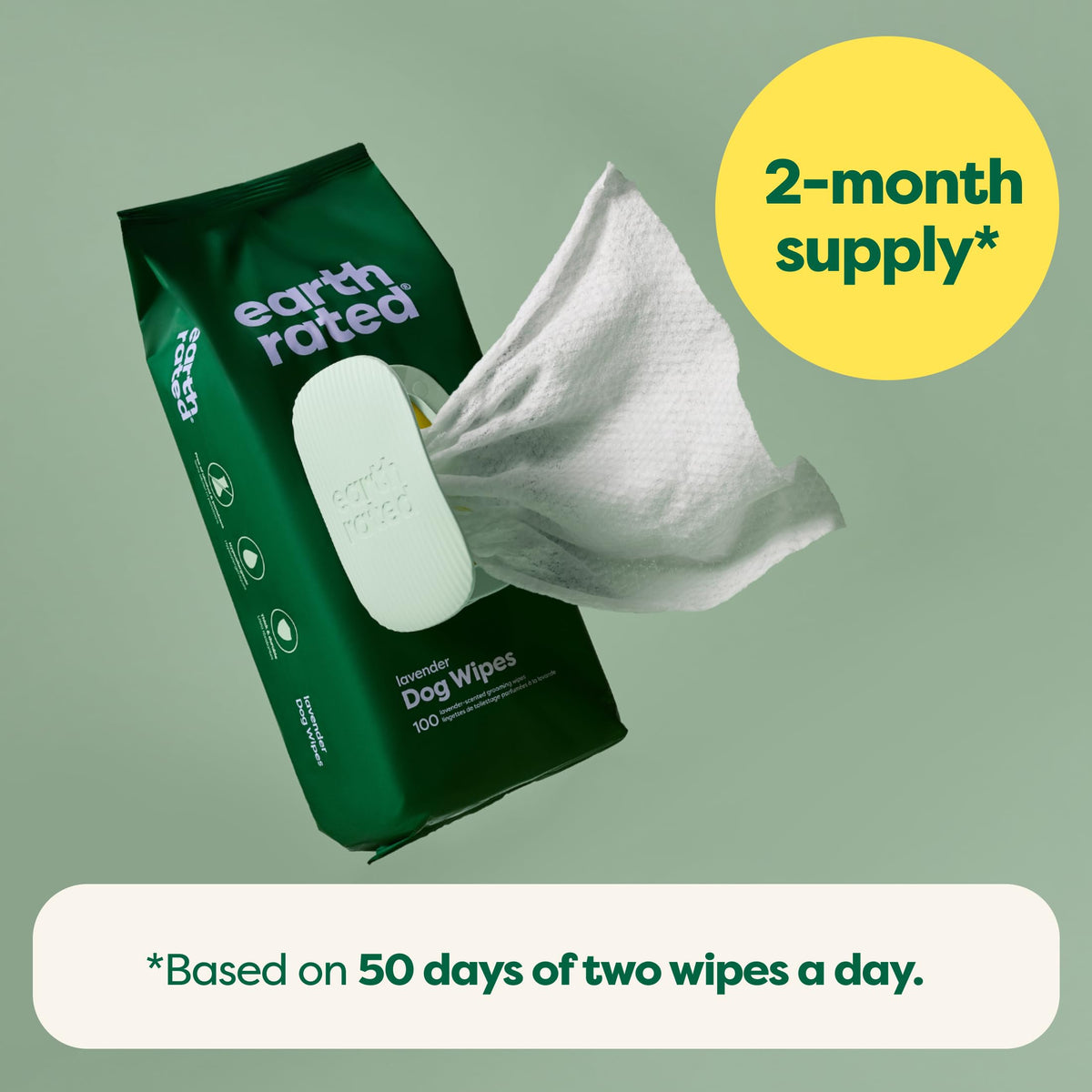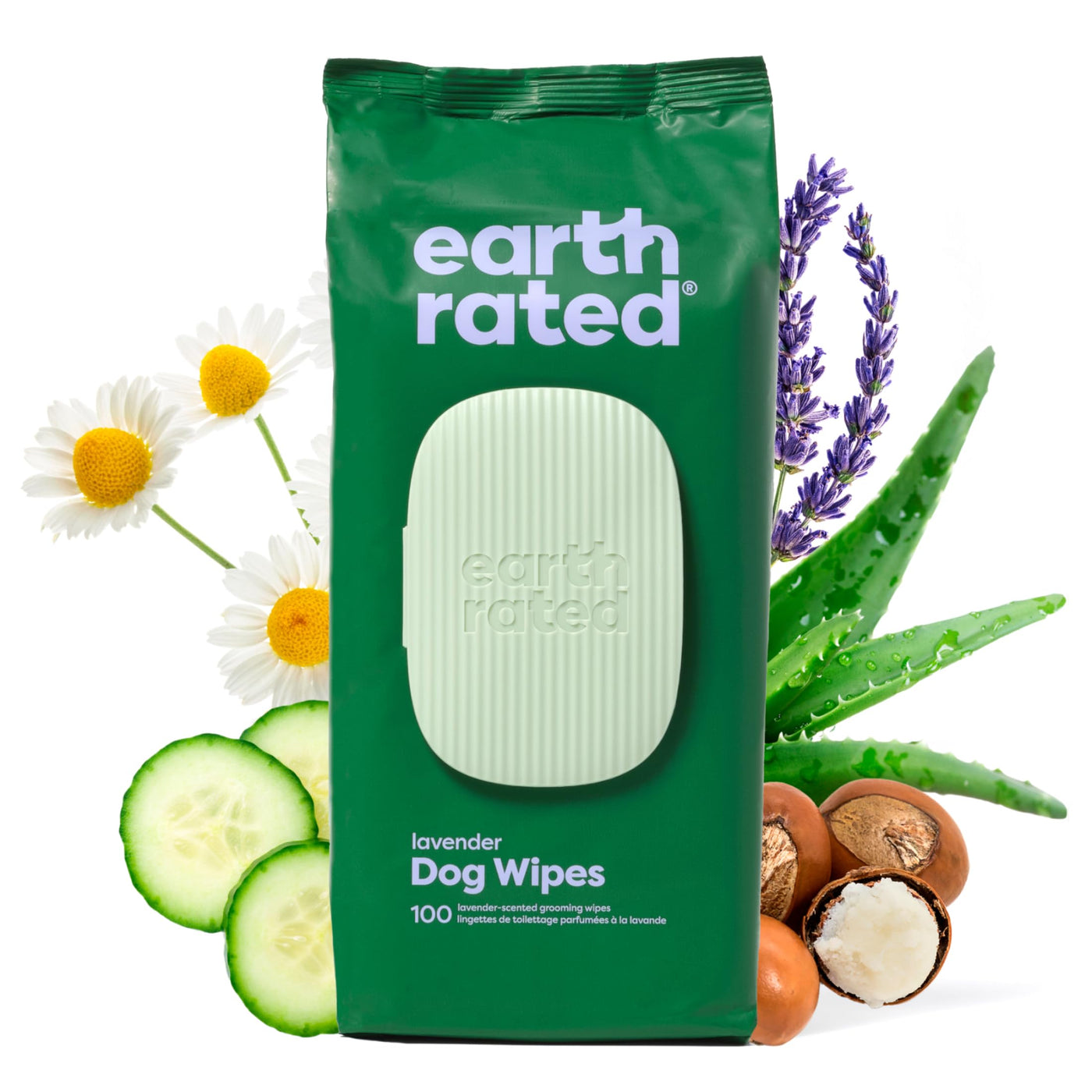 Product DescriptionGive your best friend a spa treatment in 5 minutes! Earth Rated is a team of animal lovers and pet owners, and like all Earth Rated products our dog grooming wipes are not tested on animals and are cruelty-free. Frequently Asked Questions: Q) Are Earth Rated wipes safe to use every day? A) Yes! Our wipes are composed of natural, safe ingredients like shea butter, aloe, and chamomile. Free of parabens, sulphates, and alcohol. Q) Are these convenient for travel? A) Totally. Our travel-sized packs of dog wipes are perfect for your doggie day bag, purse, or vehicle. Q) Are these effective on large dogs? A) Yes! You may need to use an extra wipe or two though. Q) Are these safe for cats? A) Because the lavender scent is derived from natural essential oils, we recommend using our unscented wipes on cats. Q) My dog just had surgery and is unable to be bathed normally. Can this help? A) Yes! Although our wipes are primarily suited for daily use, special circumstances call for special solutions. In most cases, Earth Rated wipes can supplement normal baths. Q) Are these effective for foster dogs? A) Very! We get it. Sometimes these unique doggies come from stressful backgrounds, and need time to decompress. Our dog wipes are a great solution for bathing until your dog trusts you enough to take a bath. Q) Are they durable? A) Our wipes are thick and made of a durable quilted texture that stands up to the toughest nails. Lock and grab more dirt off your dog, making for cleaner paws, and more pleasant fragrance. Scroll up and hit 'Add To Cart' today! Your doggy will thank you :)Set Contains:Resealable package of 100 scented dog grooming wipes