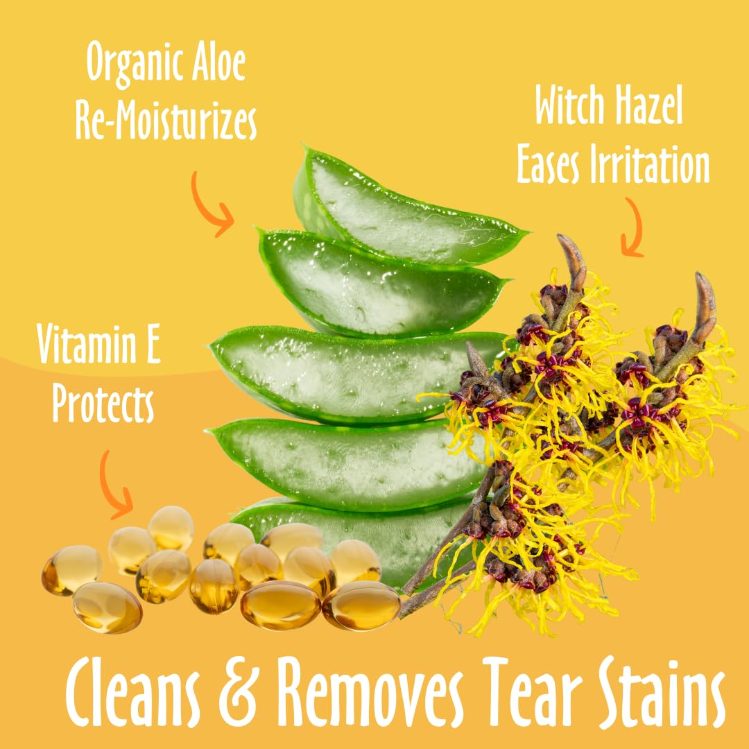 Q: Do these wipes help with tear stains on dogs?A: Yes, the earthbath Hypo-Allergenic Dog Eye Wipes are specifically designed to remove tear stains, dander, and discharge, helping to keep your pet's eyes clean and clear.