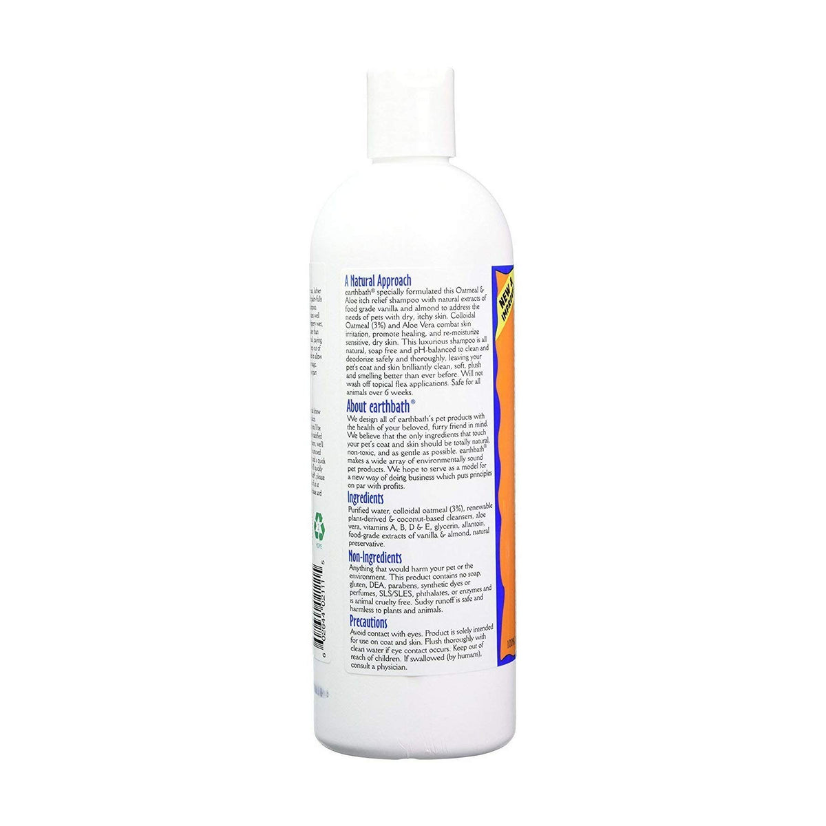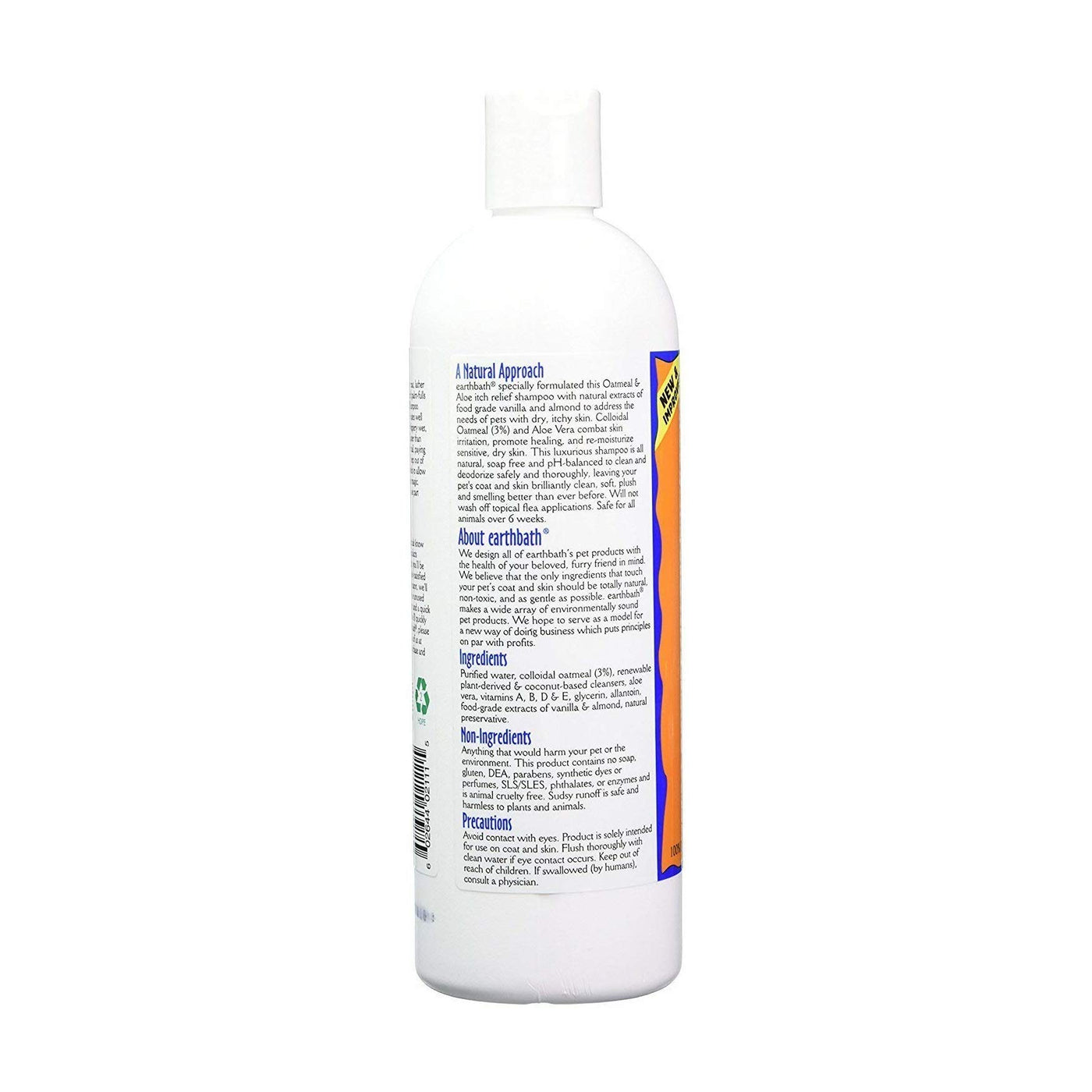 Earth bath specially formulated this Oatmeal and Aloe itch relief shampoo to address the needs of beloved pets with dry, itchy skin. Oatmeal and Aloe Vera are recommended by veterinarians to effectively combat skin irritation, promote healing, and re-moisturize sensitive, dry skin. This luxurious shampoo is all natural, soap free and pH-balanced to clean and deodorize safely and thoroughly, leaving your pet's coat and skin brilliantly clean, soft, plush and smelling better than ever before. Will not wash off topical flea applications. Safe for all animals over 6 weeks. Soap free.