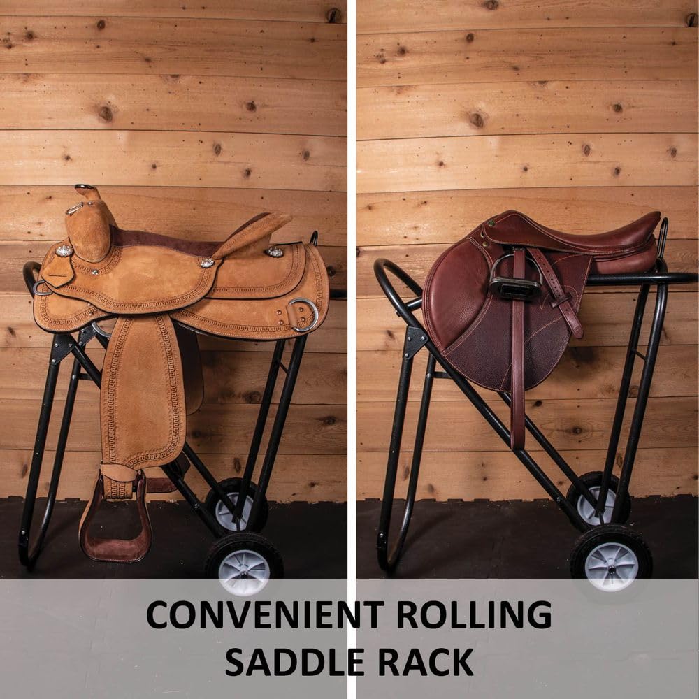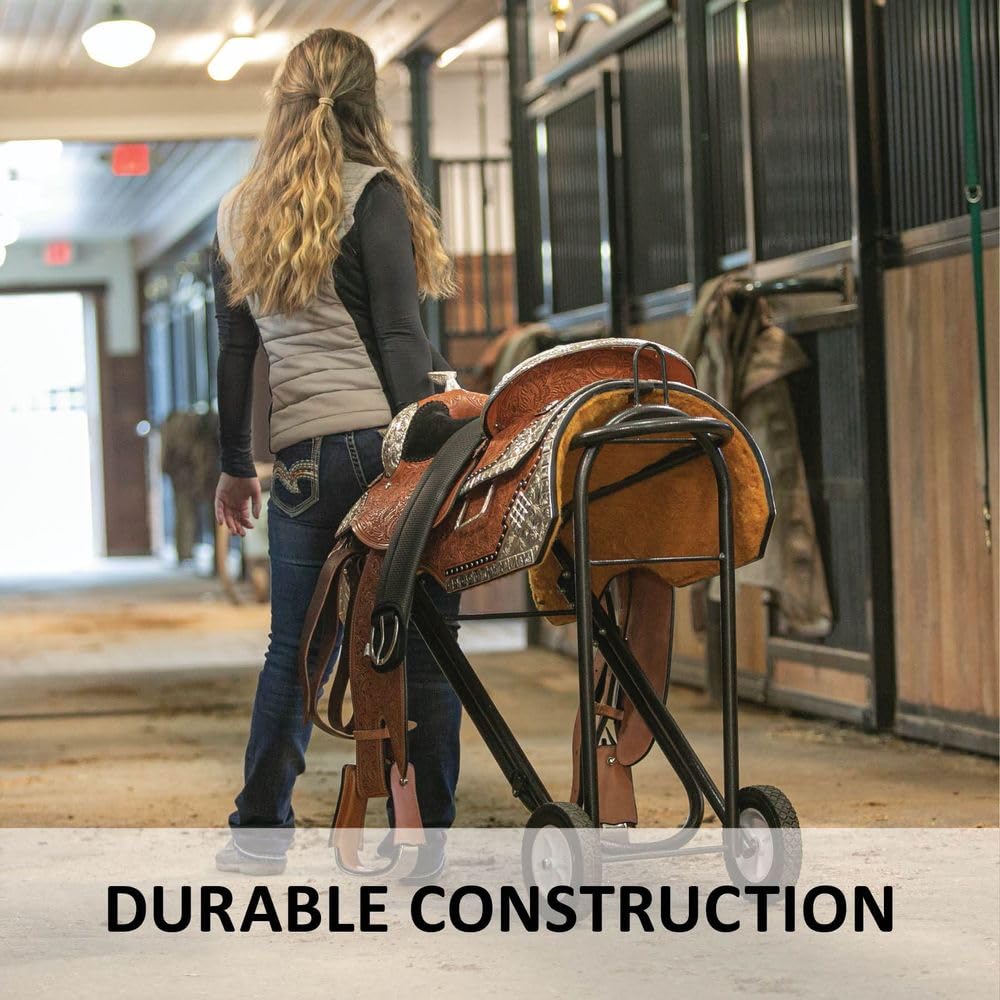 Additional Details: Mobile Saddle Rack Which Holds Saddles Allowing Easy Access In And Out Of The Tack Room Wheels Are Big And Easily Goes Through Dirt And Pea Gravel Only Assembly Required Is To Put Wheels On Which Wasn'T Too Complicated Helps In Taking Care Of Gear At The End Of Rides Easy Setup And Storage Measures 11 W X 31 H X 32 L When Opened