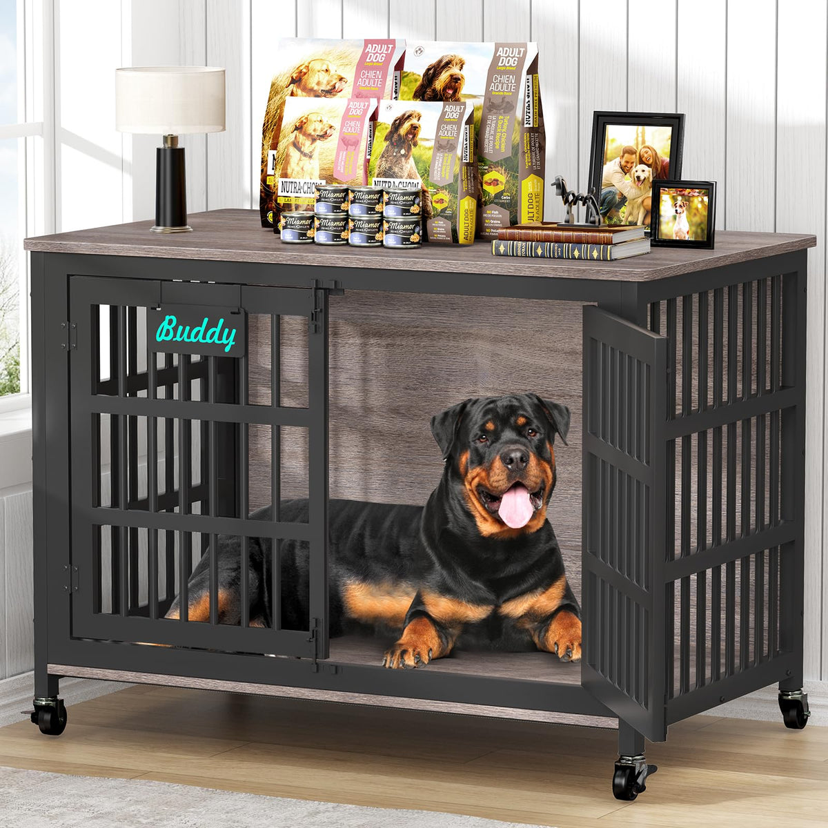EasyCom XXL Dog Crate Furniture with Name Tag, Heavy Duty Dog Kennel Indoor for Large Dogs, Escape-Proof and Chew-Proof Dog Cage for high Anxiety Dog, Decorate House as TV Stand, End Table