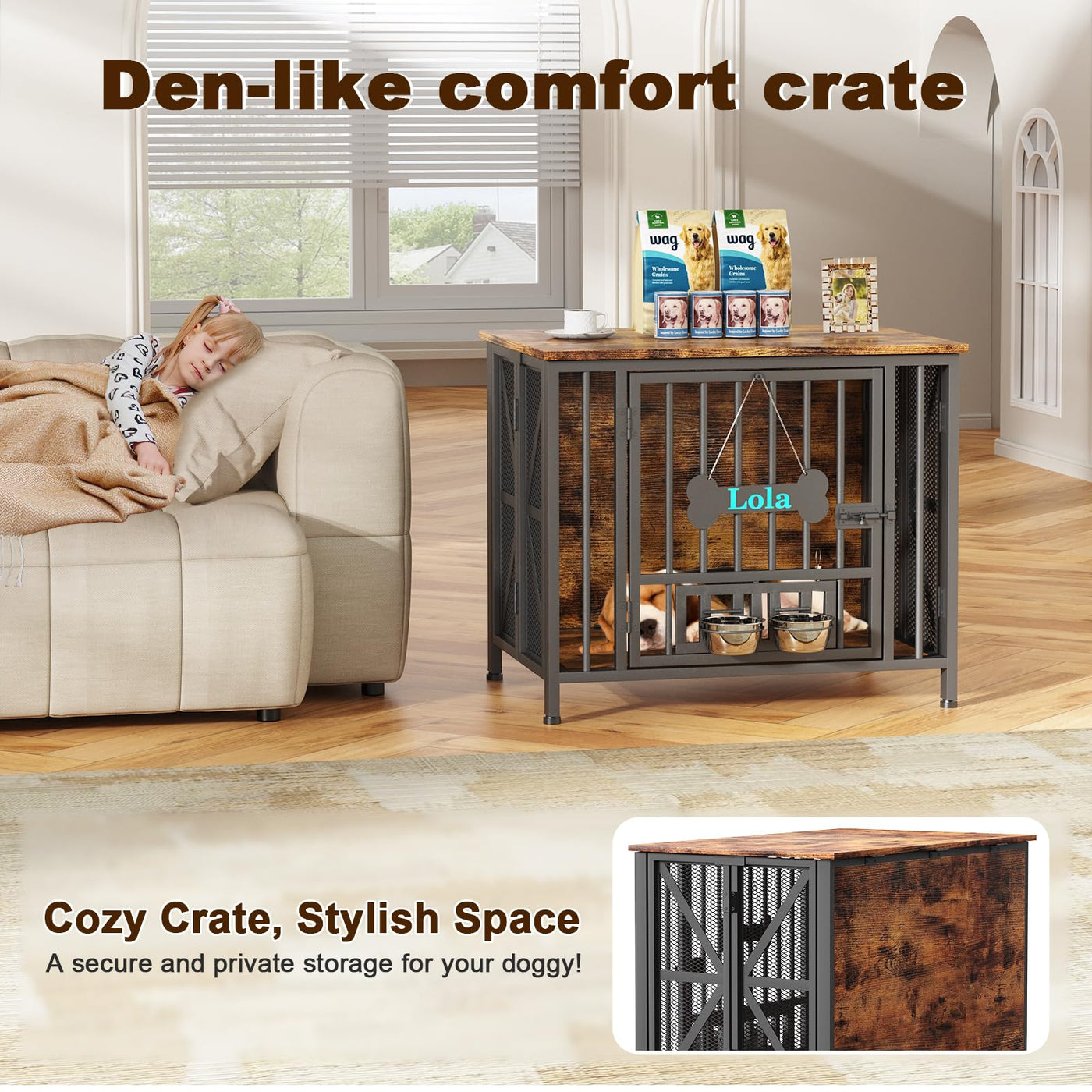 The Easycom pre-assembled dog crate not only just a dog crate but a beautiful piece of furniture, fits right into your decor! Very easy to put together, 2 swivel bowls making mealtime no mess. The Our dog crate offers excellent value for pet owners looking for a blend of style, function, and comfort for their furry companions.