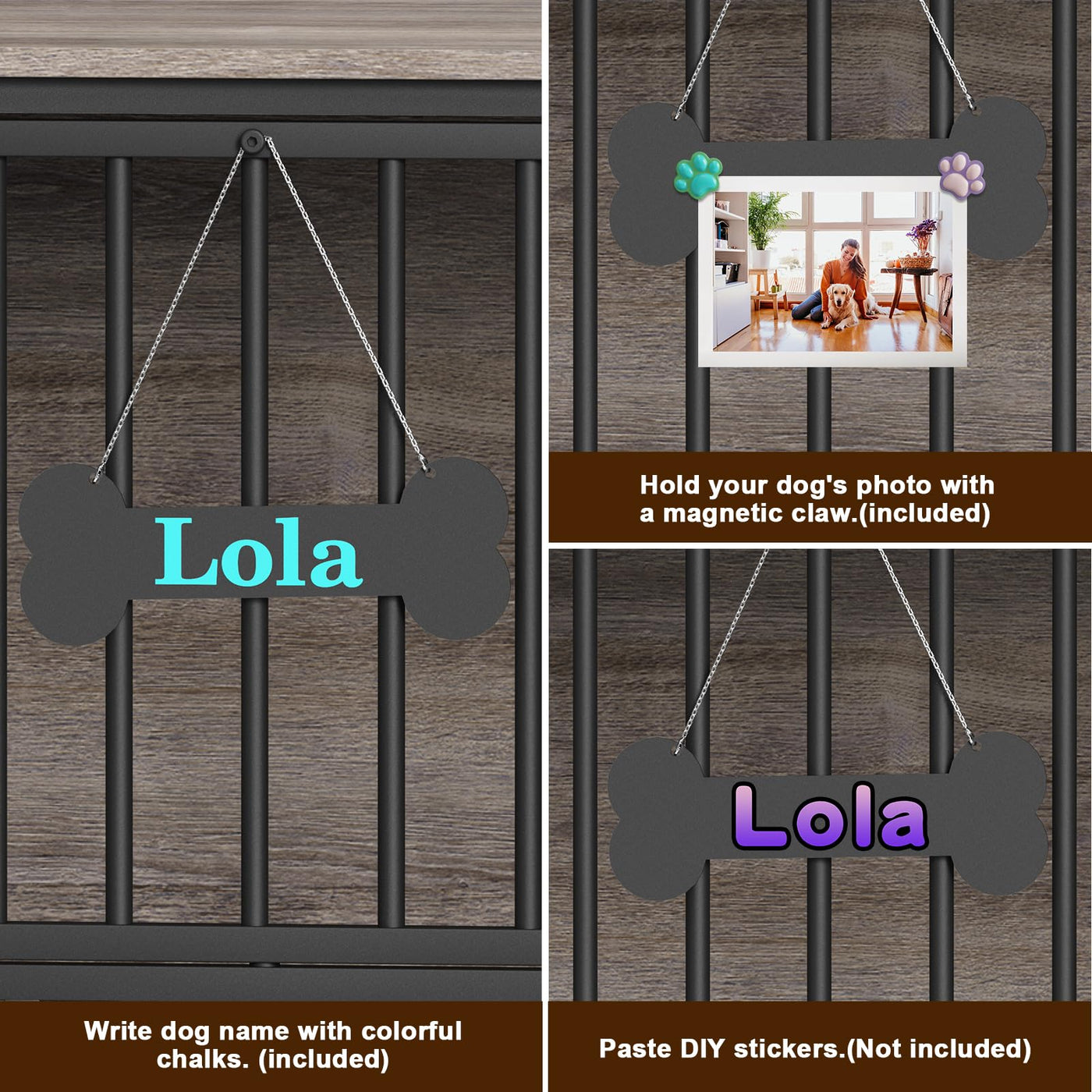 EasyCom Foldable Dog Crate Furniture, 41.3 Dog Crates for Medium/Large Dogs, Wooden Dog Kennel Indoor with Tag & Adjustable Bowl