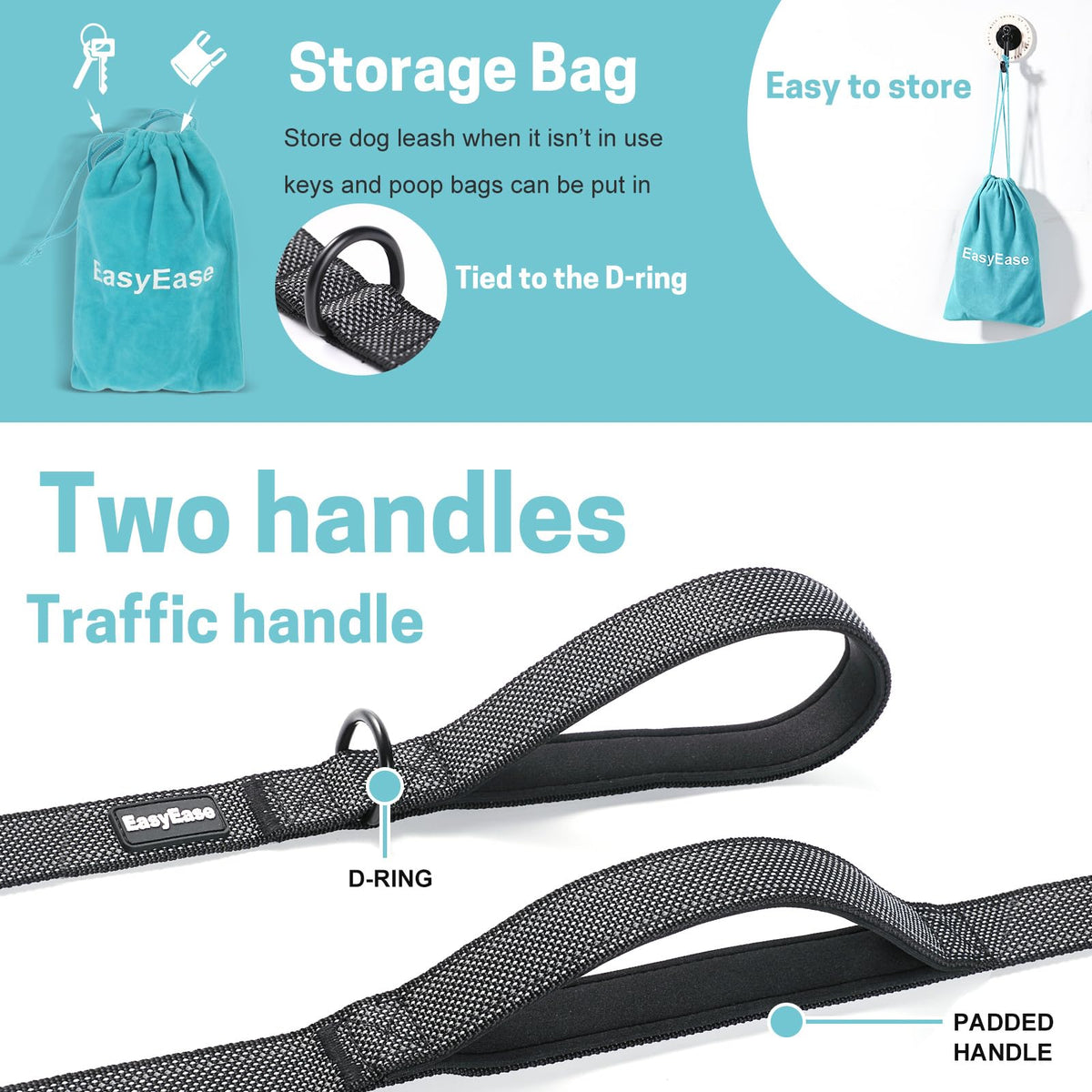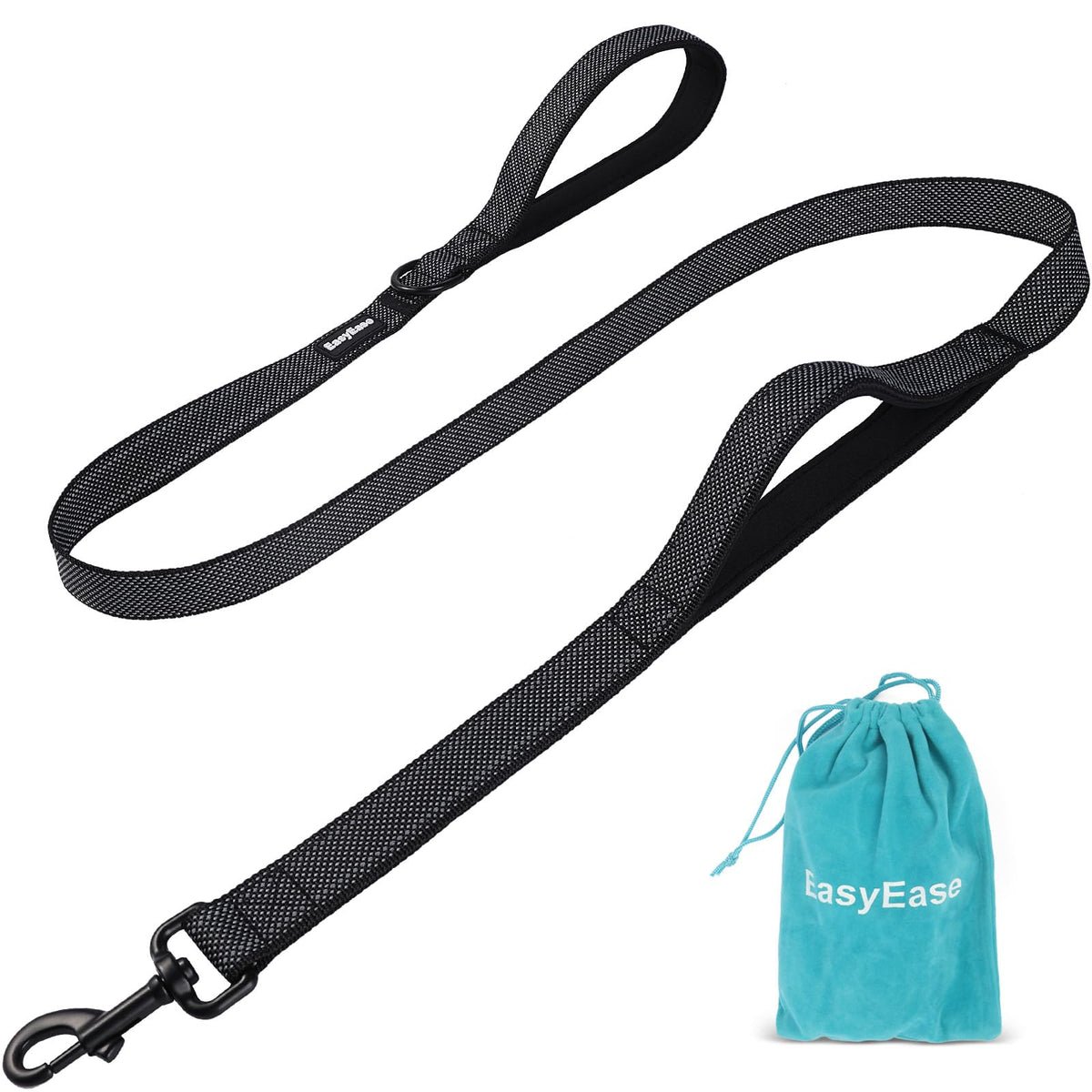 Easyease Dog Leash With 2 Comfortable Soft Padded Handles 4Ft Black Reflective Heavy Duty Pet Dog Walking Leashes Durable Dog Tr