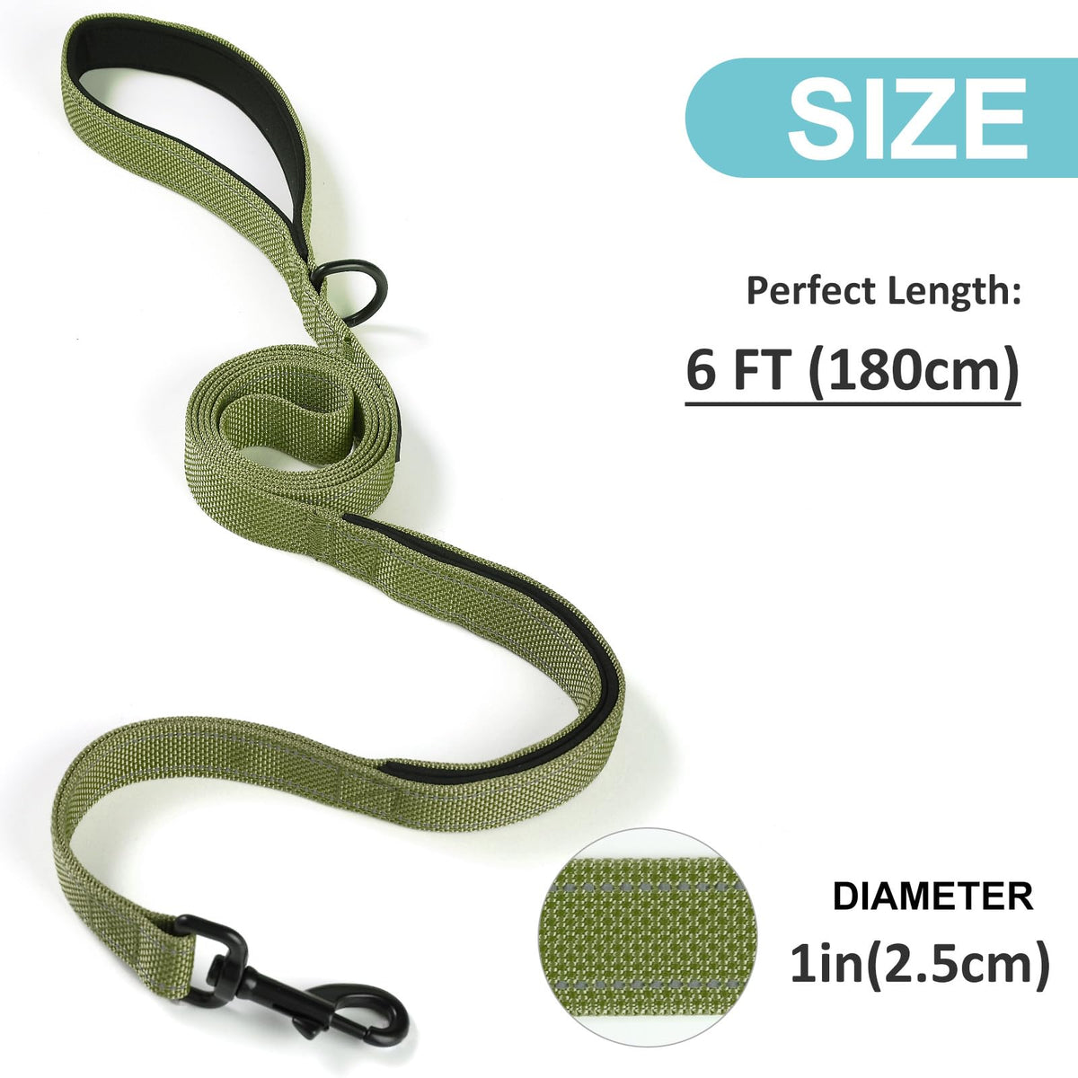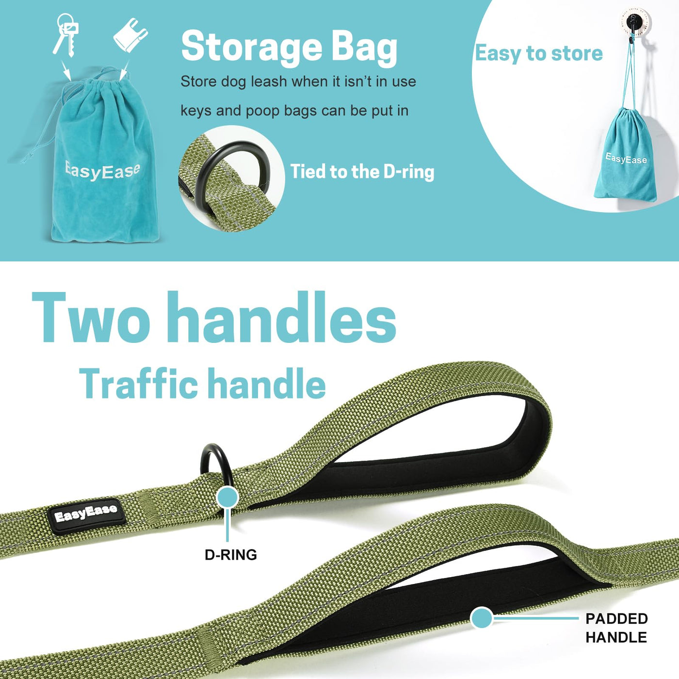 Easyease Dog Leash With 2 Comfortable Soft Padded Handles 6Ft Green Reflective Heavy Duty Pet Dog Walking Leashes Durable Dog Tr