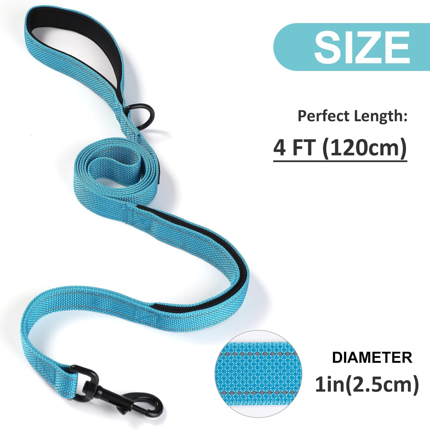 Easyease Dog Leash With 2 Comfortable Soft Padded Handles, Reflective Heavy Duty Pet Dog Walking Leashes, 4Ft Blue Durable Dog T