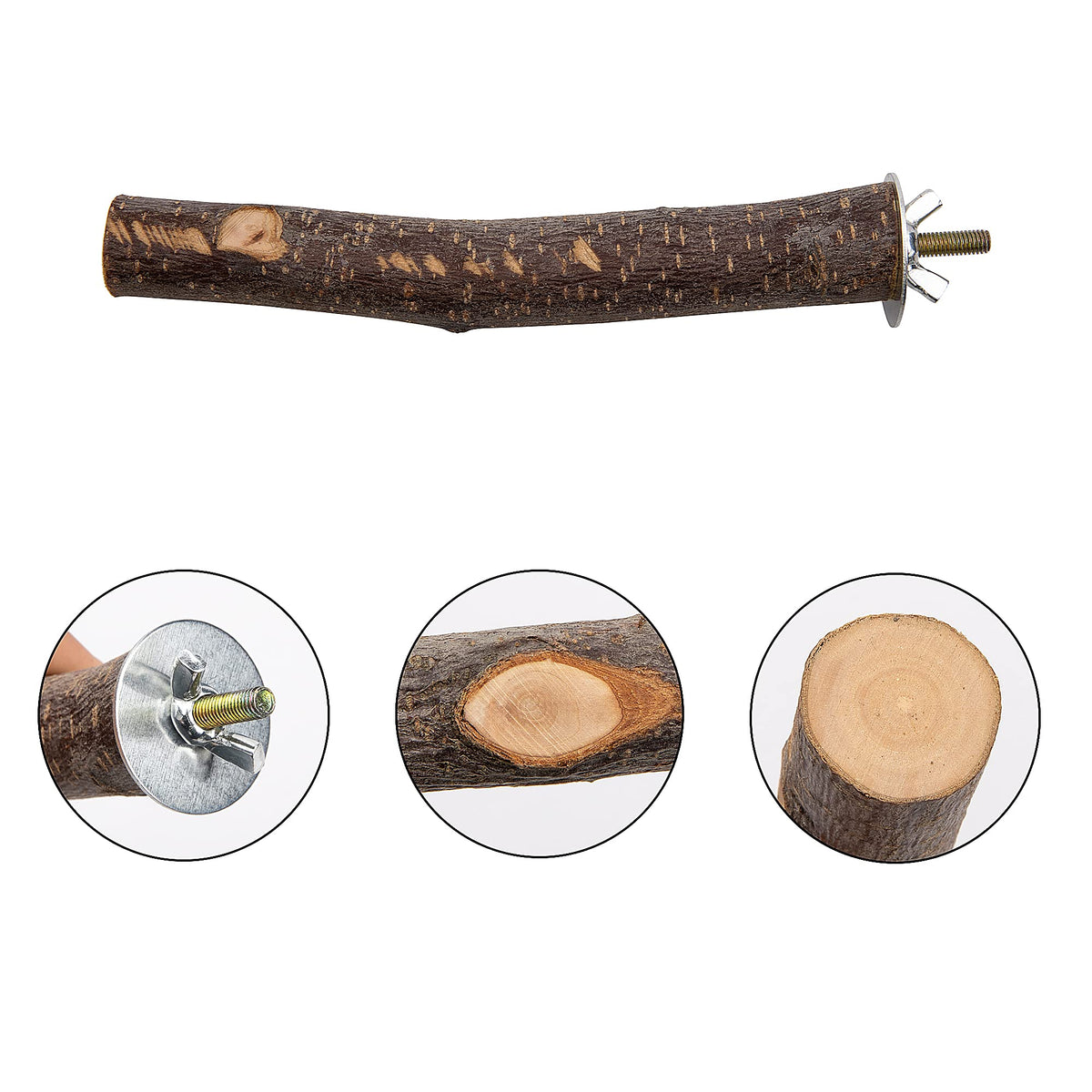 Q: How do I assemble the bird perches?A: The set includes a T-shaped perch that requires assembly. Each perch comes with a metal wing nut and built-in bolts, allowing you to easily fasten the wood branch perch onto your bird's cage using the screws provided.