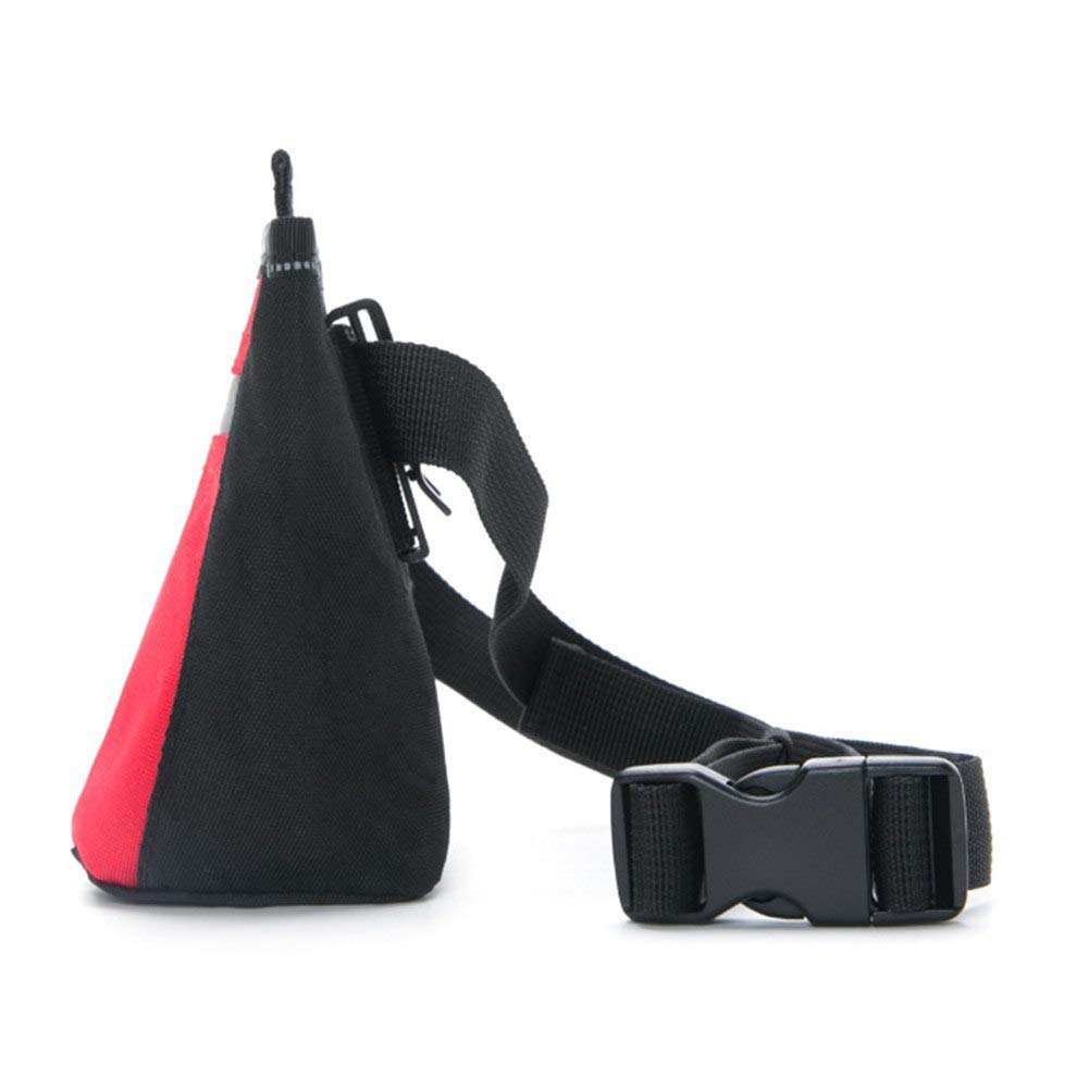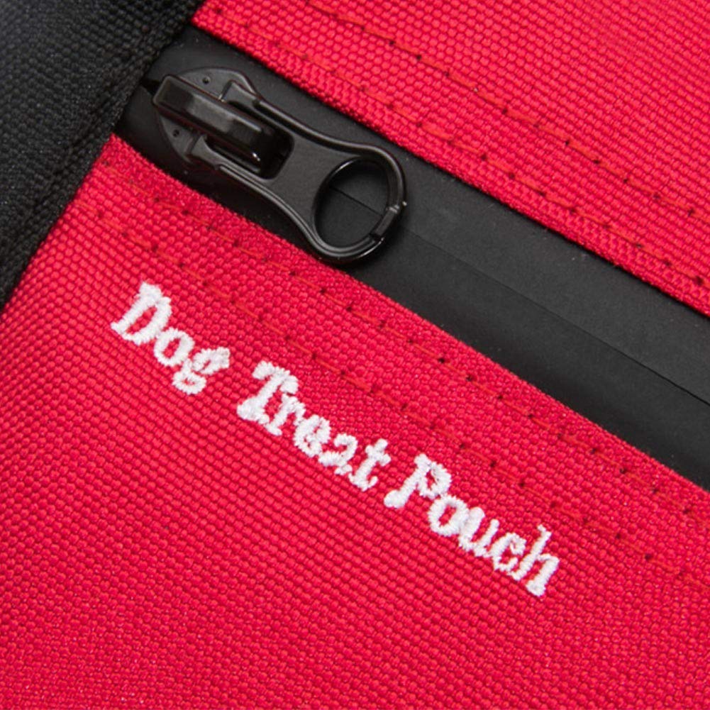 Doggy Puppy Pet Dog Training Reward Treat Bag Pouch Dog Walking Treat pouch Specification: Approx. 3 Cups Capacity. Treat Pouch Size: 5.5 x 3 x 5 (L x W x H) inch, ( 14 x 7.6 x 12.7 cm ). Zippered Front Pocket Size: 4.5 '' Wide, 3.5 '' High ( 11.43 x 8.9 cm ). Color: Red & Black. Dog Treat Waist Pouch / Dog Walking Treat Bag / Clip on Dog Pouch Bag Features: Easy Open / Close Magnetic Opening. The Dog Reward Bag has a magnetic closure with cord-pull for quick open/close operation. Wear with adjustable Belt (included) or with Clip. Made of 900 denier polyester ( ''backpack '') material. Simply wipe clean. Hand-wash and air dry for best results. The waist belt is adjustable but not detachable, the max length (full length) of the belt is around 50-inch (130 cm)