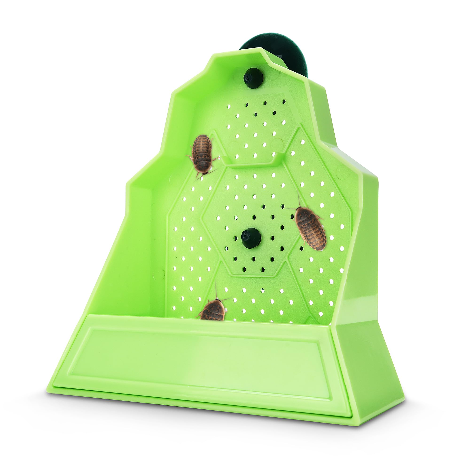 This is a wall-mounted feeder designed for reptiles. Made from high-quality and PVC material, this feeder is highly durable. Its vibrant green color makes it visually appealing, allowing reptiles to easily locate their food sources, and it fits seamlessly within any reptile vivarium. The compact wall-mounted design saves space, enabling you to install it wherever you need. Inside the feeding box, climbing wires help insect climb, simulating a natural hunting process. There is also a bait slot for insects, allowing you to place bait to attract live insects to climb up, which encourages reptiles to showcase their natural hunting behavior. With its anti-escape concave design on the sides, smooth inner walls, and specially designed contour edges, the feeder effectively prevents insects from escaping, ensuring they remain securely inside. This design ensures that live food will not leak out during feeding. The bottom panel is removable for easier cleaning and maintenance of hygiene. Available in three different sizes, this feeding box is suitable for a variety of reptiles, including chameleons, lizards, iguanas, geckos, and frogs. It is ideal for use in both desert and tropical rainforest ecological tanks, making it an effective choice to enhance your reptiles feeding experiences.