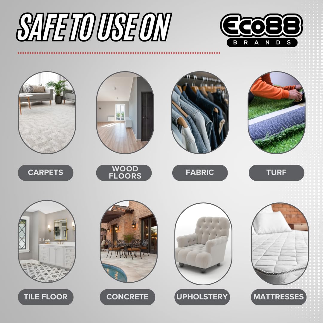Q: Is Eco-88 safe to use around pets and children?A: Yes, Eco-88 is non-toxic, virtually odorless, and safe to use around pets, children, and plants. Its formula ensures that it does not pose any health risks while effectively eliminating odors and stains.