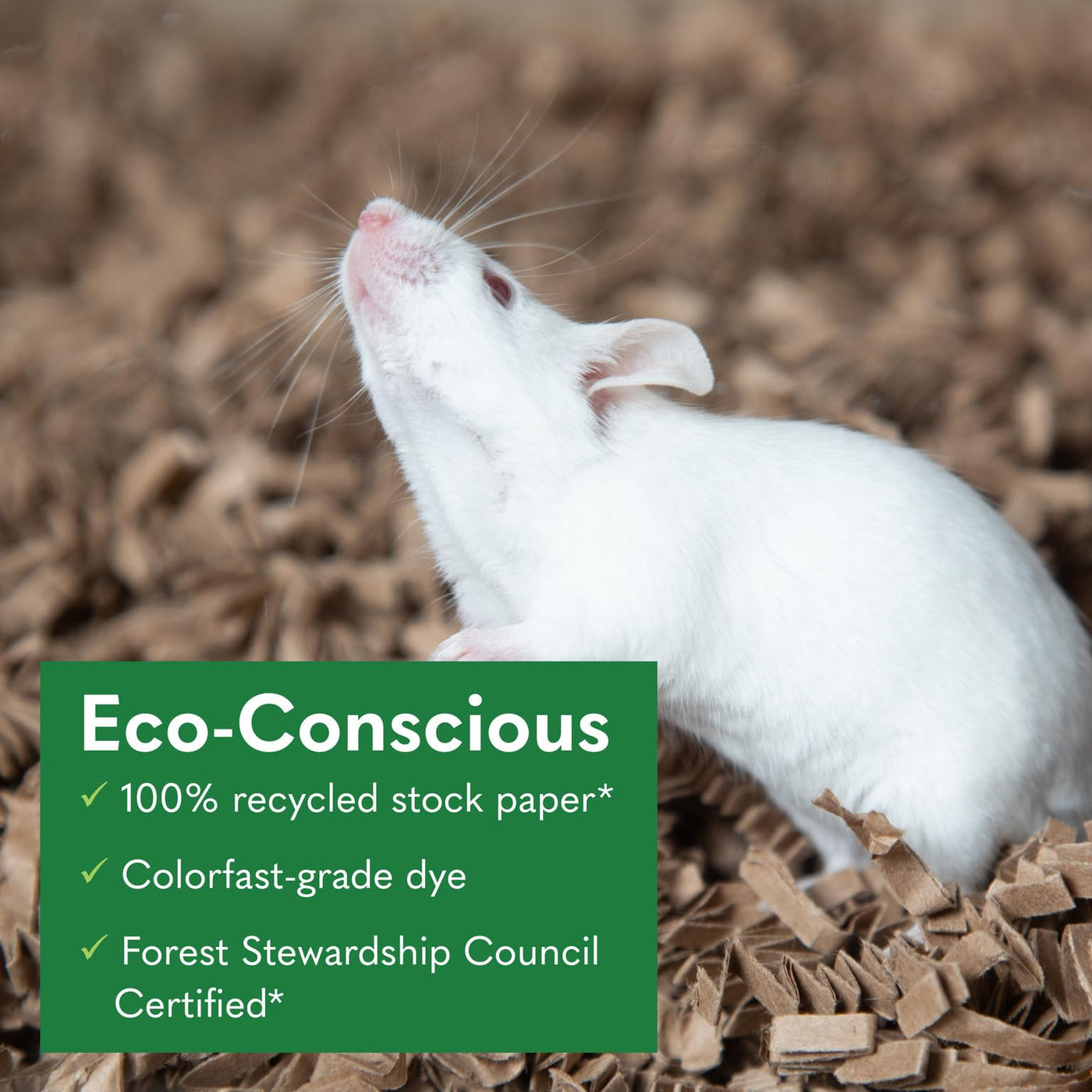 Q: Is the ECO BEDDING biodegradable?A: Yes, ECO BEDDING is completely biodegradable, made from recycled stock paper. This eco-conscious choice not only benefits your pets but also helps reduce waste.