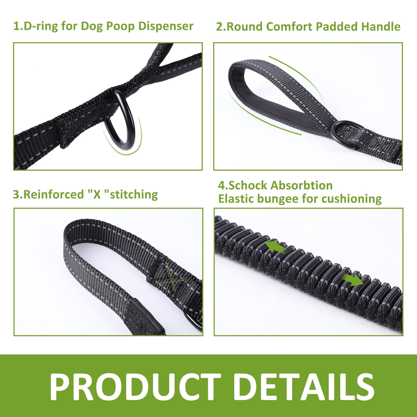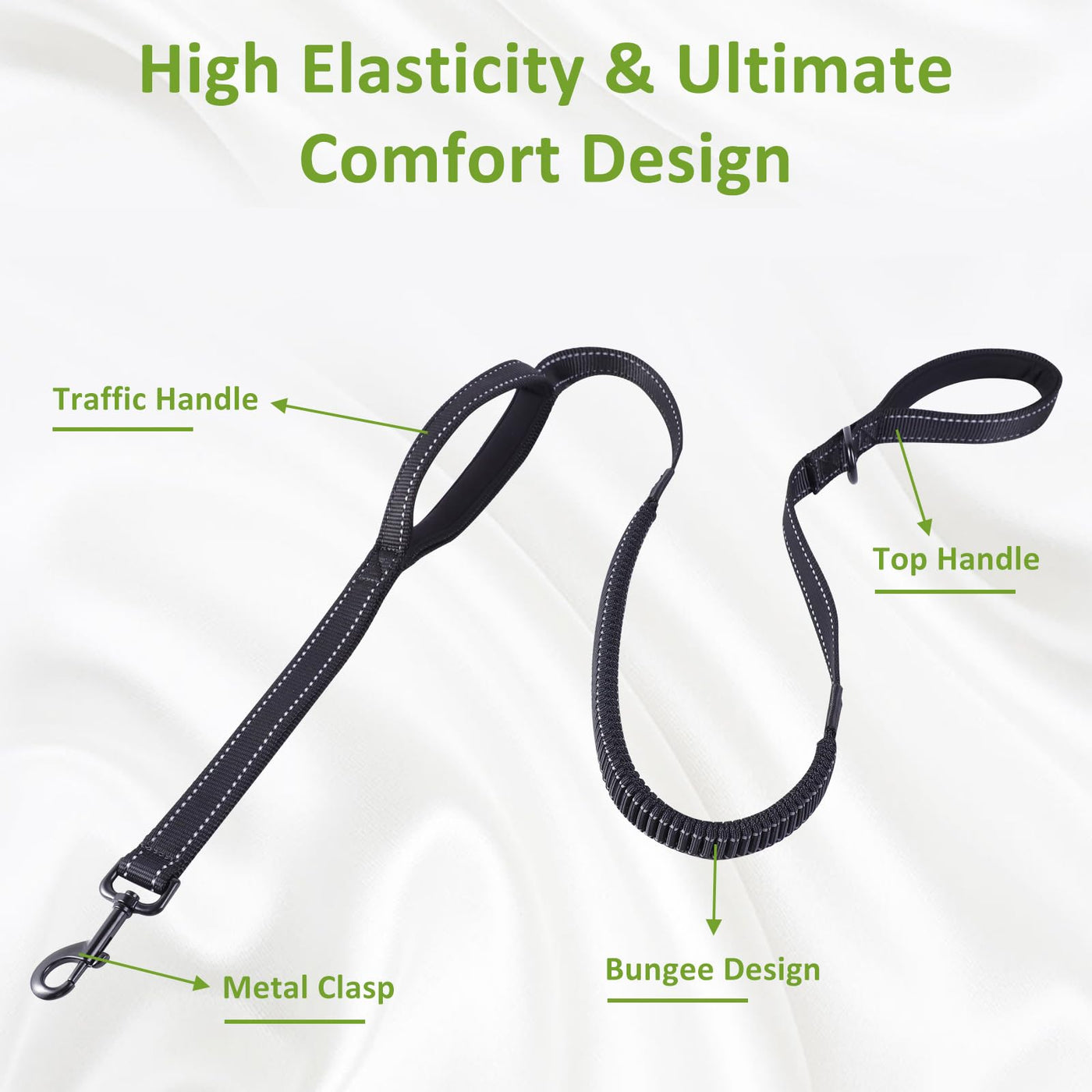 Eco-Clean Dog Leash, 6 Ft Bungee Dog Training Leash, Reflective Dog Leash For Medium Large Dogs, Shock Absorbing Retractable Str