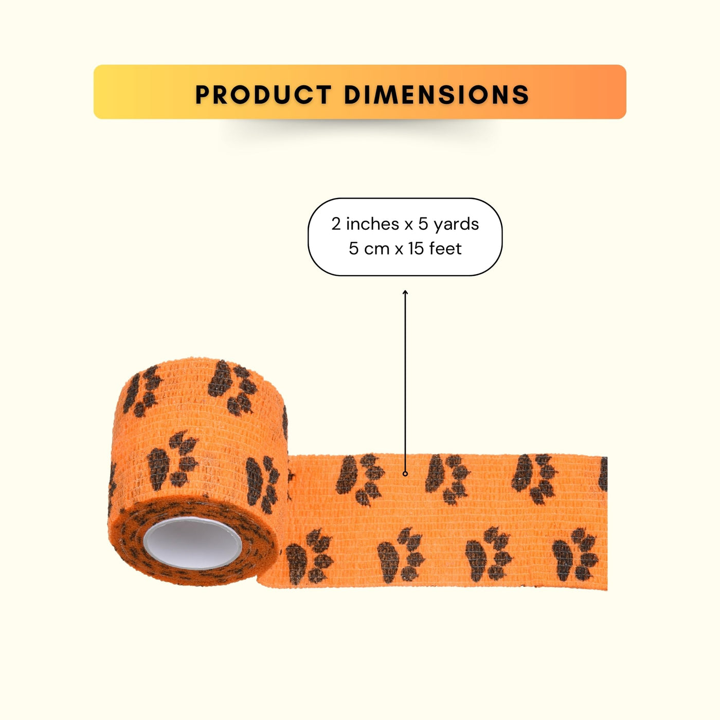 Eco-Fused Self Adhering Bandage Use wraps as a pet wound dressing and to protect your pets knees, elbows and other swollen body parts. Cohesive bandages are perfect for large and small pets. Perfect for dogs, cats, horses and more. The non-woven porous material is easy to tear and wrap. It can provide breathable, non-slip support and does not stick to the pet s hair. Use to cover wounds and stitches on your pets body. There are 6 rolls of elastic bandages with different colors to choose from. Our handy, self-adhering bandages are the perfect part of a pet emergency kit. It can be torn directly by hand, with no fasteners or clips needed. Contents: 12x with print 2 inches (5 cm) 1x Eco-Fused Cleaning Cloth