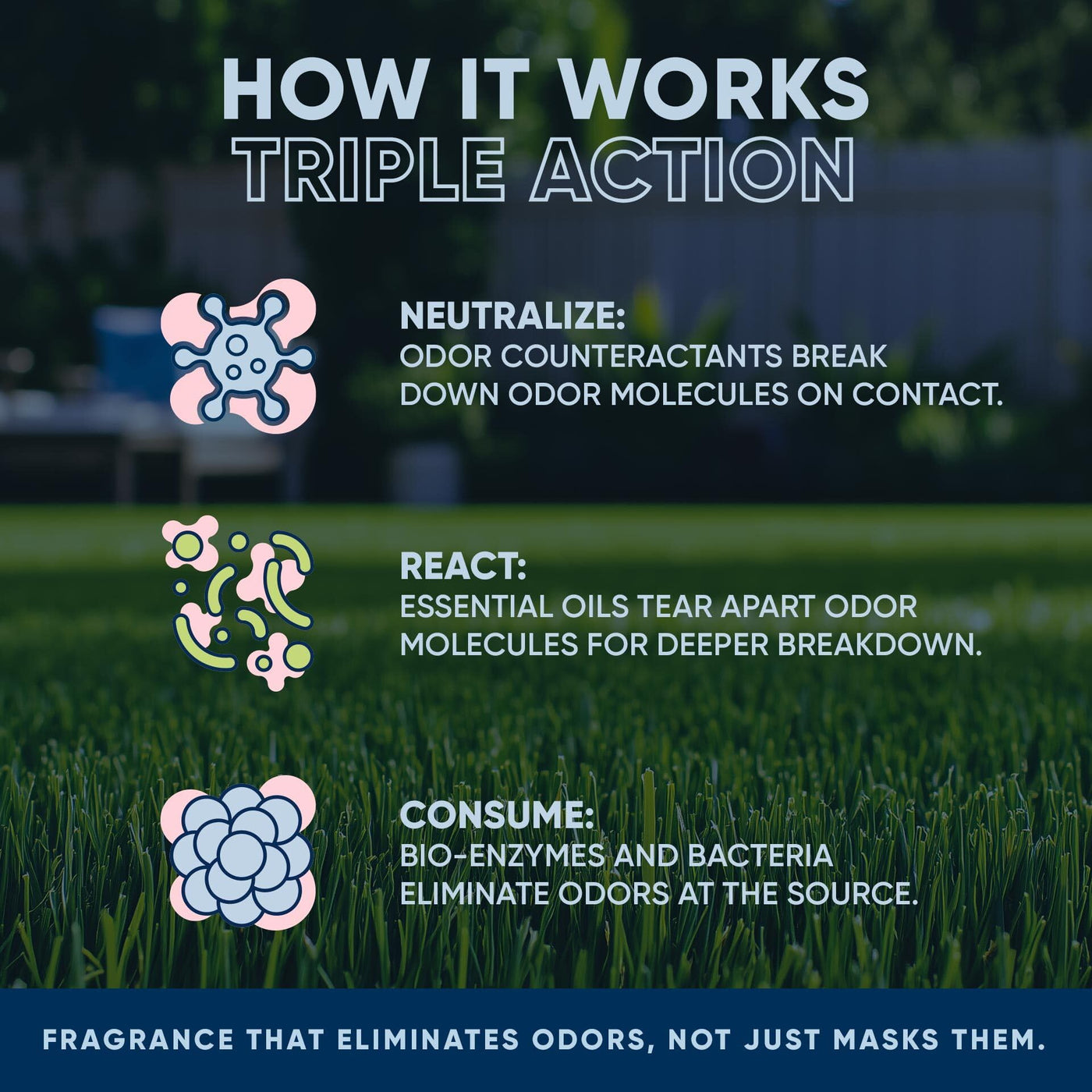 Long-Lasting: Thanks to our super-concentrated formulation, one treatment, when used as directed, can provide results that last several weeks, ensuring your outdoor spaces remain fresh and odor-free.