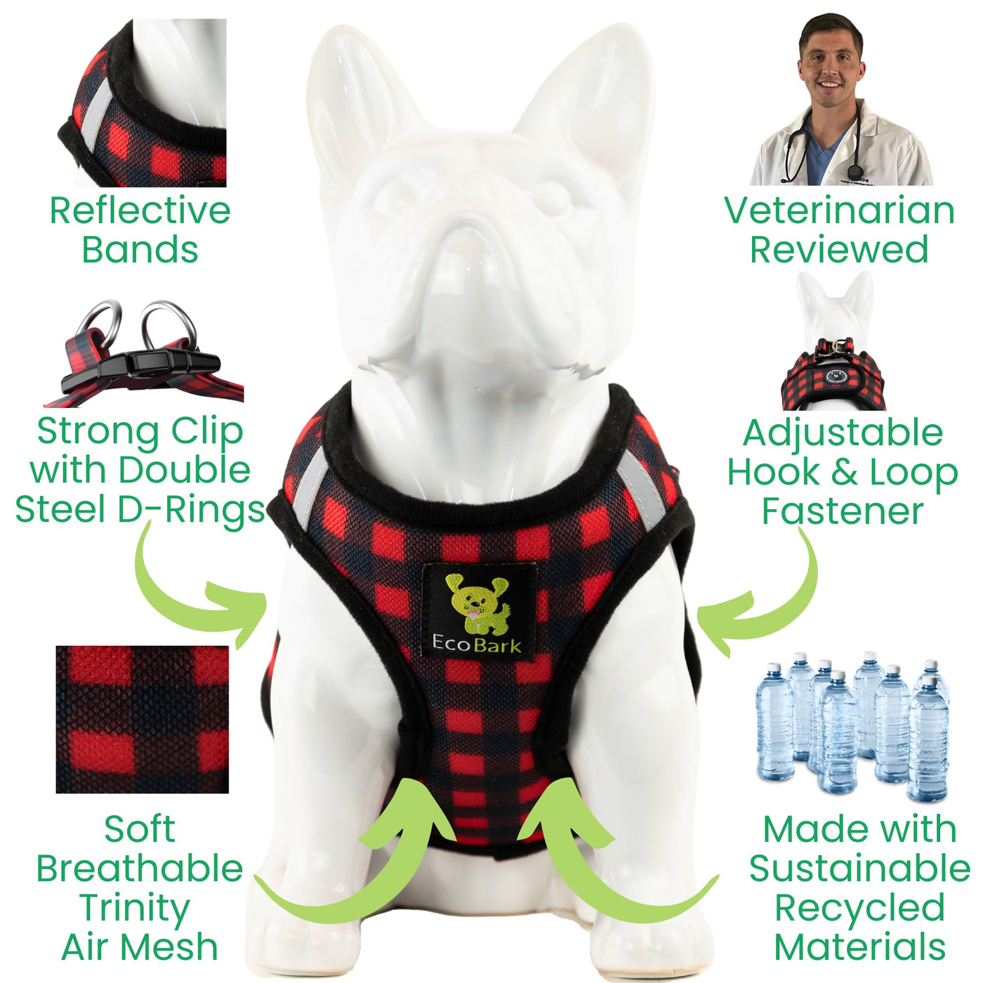 Ecobark Step In Dog Harness - Eco-Friendly Small Breed Dog Harnesses For Xs And Small Dogs - Reflective And Adjustable Mini Body Halter Vest - Tiny Soft Mesh Toy Breed Harness (Red Plaid, Small)