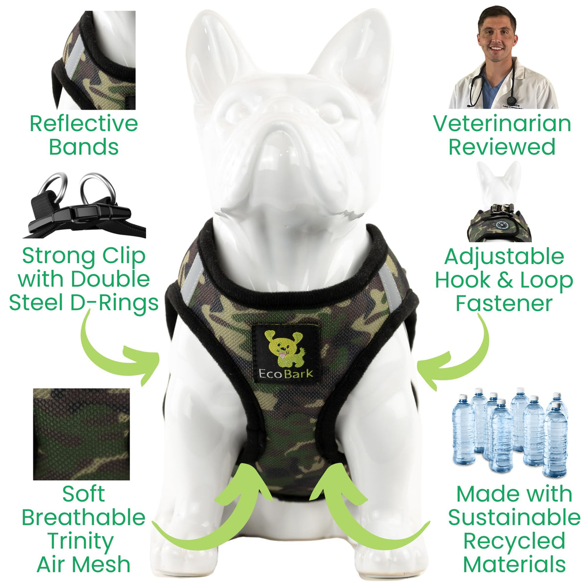 Ecobark Step In Dog Harness - Eco-Friendly Teacup Dog Harnesses For Xxs, Xs, And Small Dogs - Reflective And Adjustable Mini Body Halter Vest -Tiny Soft Mesh Toy Breed Harness Under 5 Lbs (Xxxs, Camo)