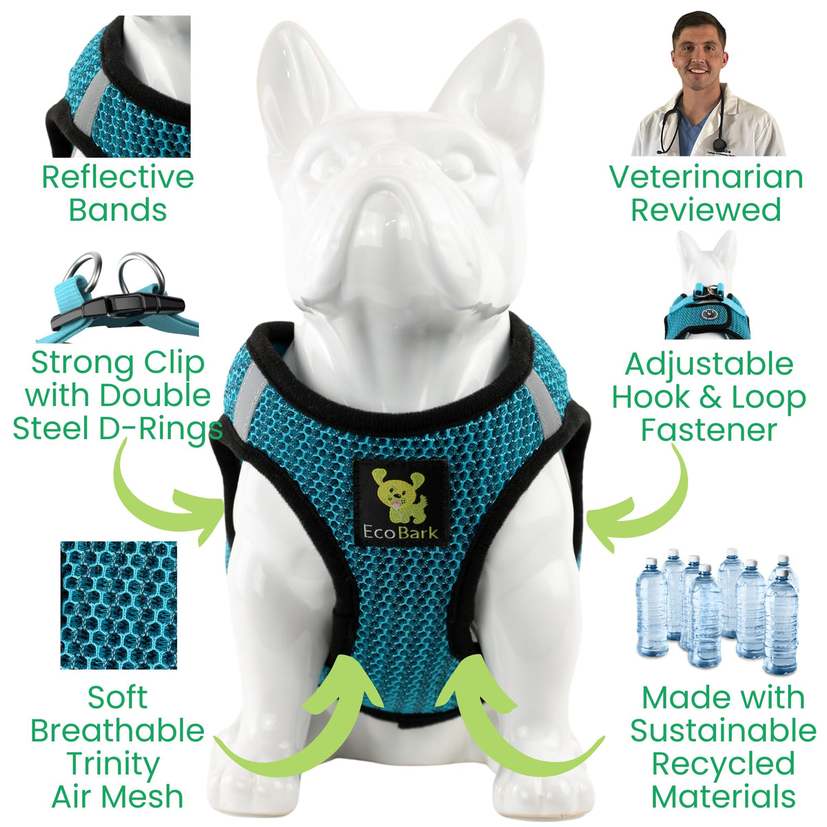 Ecobark Step In Dog Harness - Reflective Soft Luxurious Mesh Dog Harnesses For Xxs, Xs, Small, And Medium Dogs - Eco-Friendly Comfort Secure Halter No Pull Adjustable Pet Vest (Aqua Sport, Xxxs)