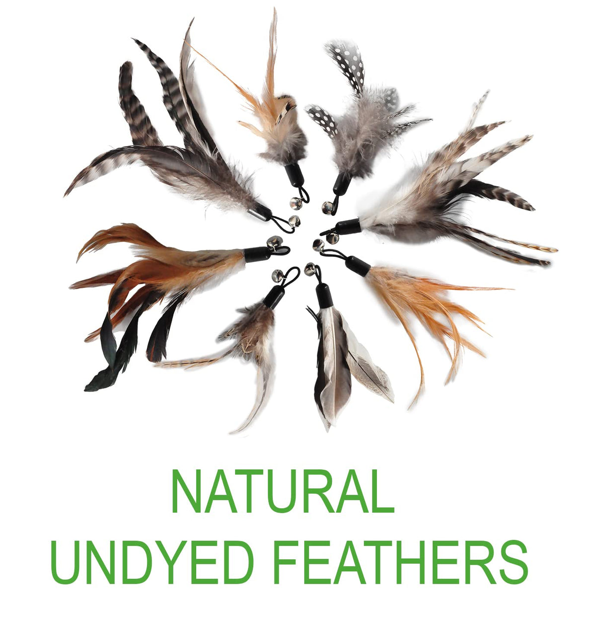 Ecocity Cat Toys - No Chemical Dyeing Cat Feather Toys For Indoor Cats - Include Cat Wand And Natural Feather Refills