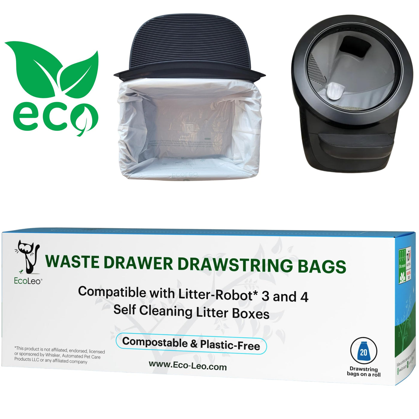 Ecoleo, Compatible With Litter-Robot 4 & 3, Compostable, Eco-Friendly Waste Bags With Drawstrings, Thick, For Automatic Litter B