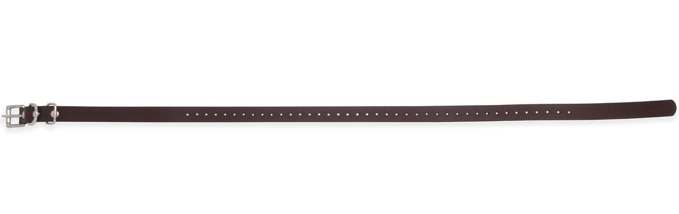 Let your dog play freely outdoors and in the water confidently with the Educator Biothane Dog Collar. The Biothane material is waterproof and odorproof keeping you and your dog happy and comfortable. The collar is adjustable and may be trimmed to desired length for a custom fit. The heavy-duty metal buckle closes securely and the strong steel D ring may be used to attach an ID tag and leash. The collar is an ideal replacement to use with the Educator E-Collar with Remote Training system. The 3/4' wide collar is compatible with Educator 300, 400 and 900 series training collar receivers, as well as Bark-less Pro model 504. Your complete satisfaction is our only concern; for support about your collar or fit live US phone support is available Monday through Friday between 8 am and 7 pm Eastern. Made in the USA.