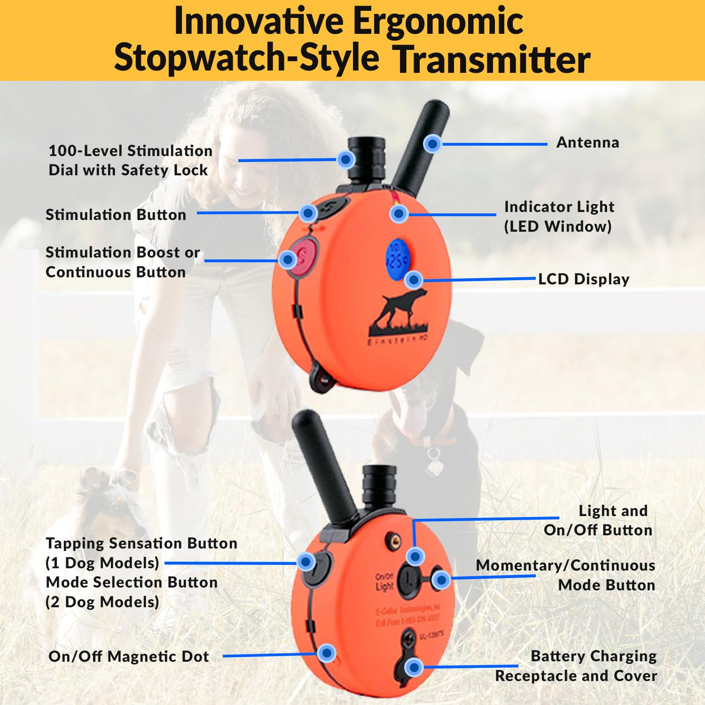 Educator E-Collar Humane Dog Training Collar With Remote, 100 Safe Tapping Stimulation Levels, Night Light, Waterproof, Rechargeable, 1 Mile 1 Large Dog, Orange