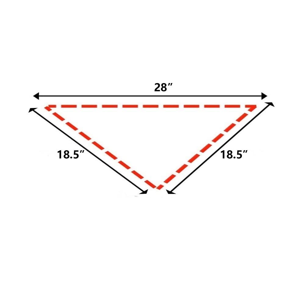 Q: What are the dimensions of the bandana?A: The bandana measures twenty-eight inches by eighteen and a half inches when folded into a triangle. This size is suitable for medium to large dogs.