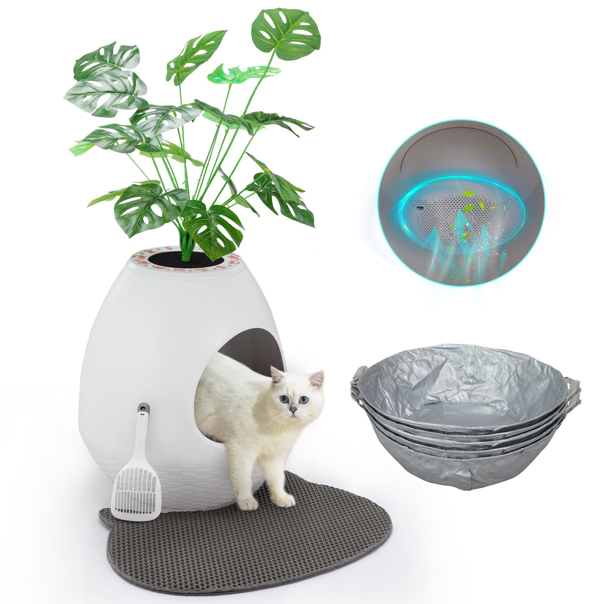 Are You Tired Of The Odor And Scattered Litter From Your Cat At Home? Imagine Having A Cute Egg-Shaped Cat Litter Box In Your Living Room, Which Is Not Only Beautiful But Also Effective In Reducing The Odor. This Specially Designed Venting Device Not Only Removes The Odor, But Also Solves Your Problem Without Disturbing Your Kitty. The Clear Light Strip, Intelligent Mode Switching, Quiet Operation, Large Capacity And Multi-Functional Usage Help You To Improve The Quality Of Life And Create A More Comfortable Living Environment For Your Cat. Let'S Explore The Wonders Of This Cat Litter Box Together, Say Goodbye To Odor And Welcome Freshness Every Day!