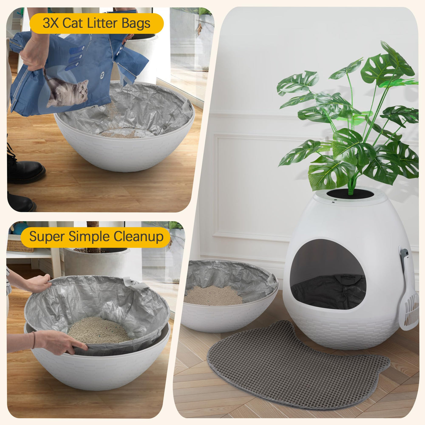 Eggloa6 Litter Box Plant Cat Litter Box Enclosure Extra Large Hidden Litter Box With 5Pcs Litter Box Liners, Cat Litter Mat, Sma