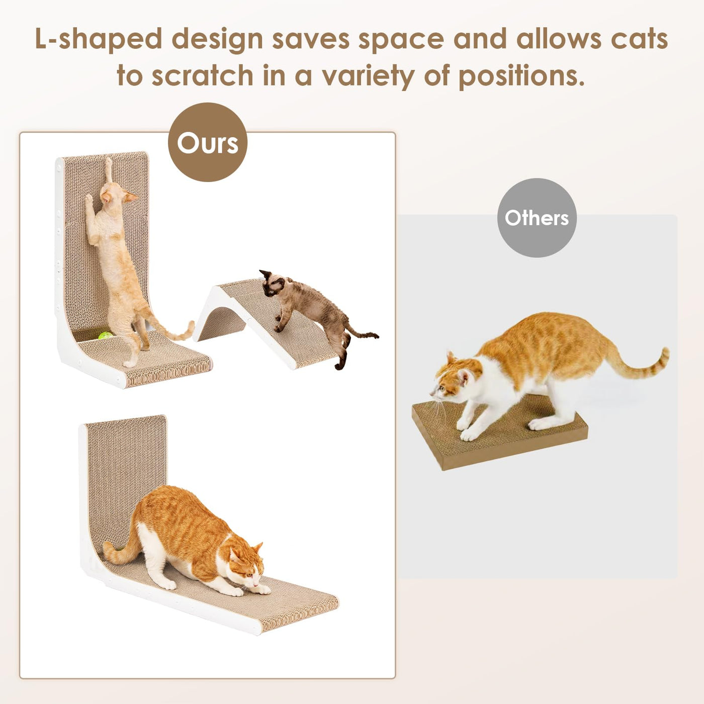 Our L-Shaped Cat Scratcher Is Made Of High-Density, Non-Toxic Corrugated Paper For Durability. This Creative Design Not Only Protects Your Furniture, But Also Allows Your Cat To Scratch Comfortably In A Variety Of Positions. In Addition To Scratching, This Multifunctional Cat Scratching Board Allows Cats To Relax, Stretch And Play As The Included Toy Ball Adds Extra Fun. To Fit Cats Of All Sizes, We Offer Three Different Sizes Of Cat Scratch Pads, Including A Special Size Designed For Kittens. No Matter What Size Your Cat Is, It Enables Your Cat To Scratch And Play To Its Heart'S Content! Our Installation Is Easy To Follow And Comes With Detailed Instructions And The Necessary Tools. For Your Convenience, We Also Provide An Installation Video To Guide You Through The Process Quickly And Easily. Having A Durable, Multifunctional, And Easy-To-Install Cat Scratching Pad For Your Cat Will Enhance Their Comfort As Well As The Safety Of Your Furniture.