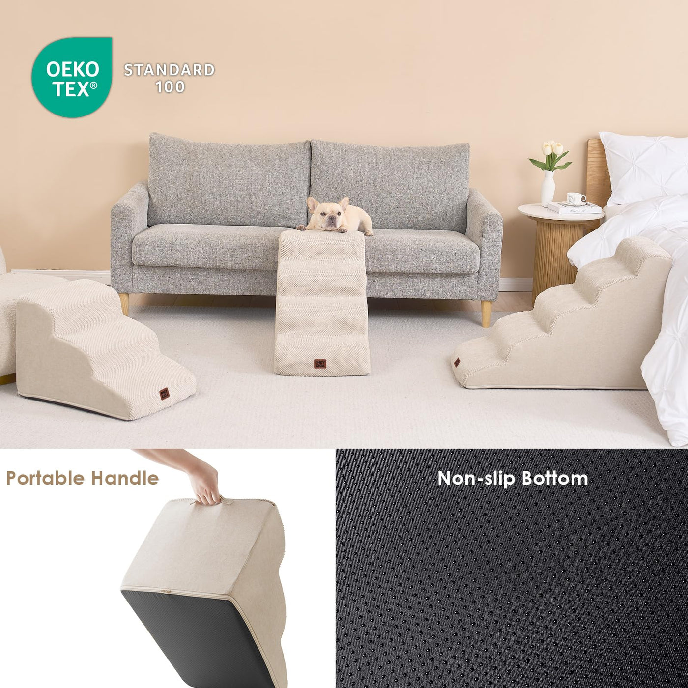 Q: What colors are available for the EHEYCIGA dog stairs?A: The EHEYCIGA foam dog stairs are available in a wide range of colors, including a stylish beige option, allowing you to choose a color that best suits your home decor.