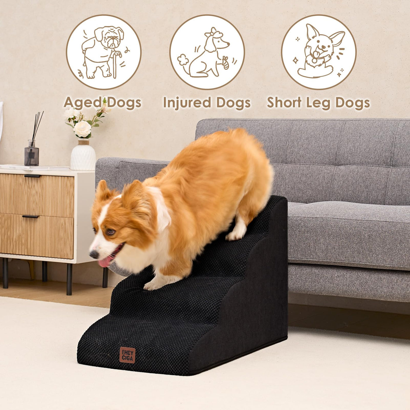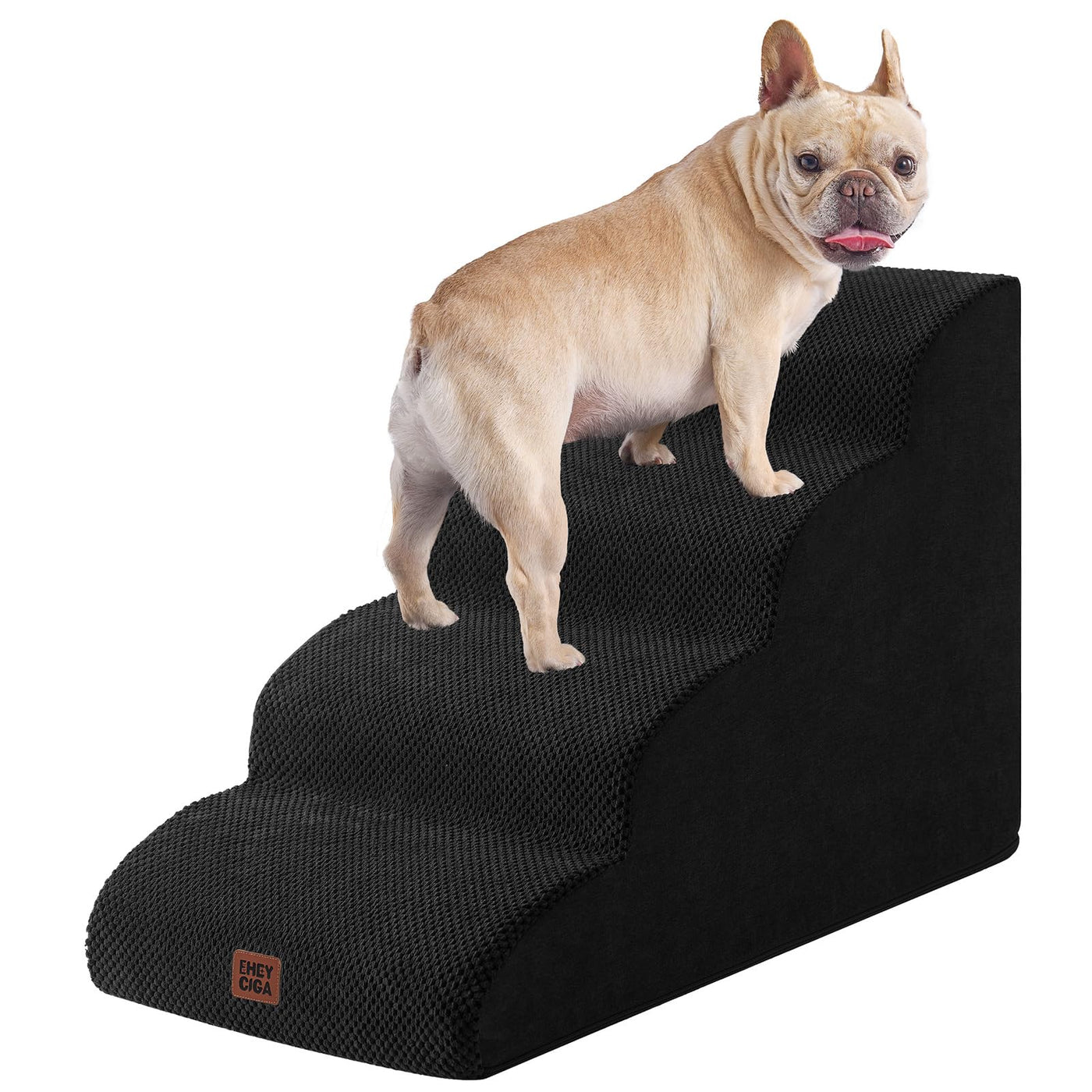 Eheyciga Curved Dog Stairs Ramp For High Beds 19.7' H, 4-Step Dog Steps For Small Dogs And Cats, Pet Stairs For High Bed Climbing, Non-Slip Balanced Pet Step Indoor, Black