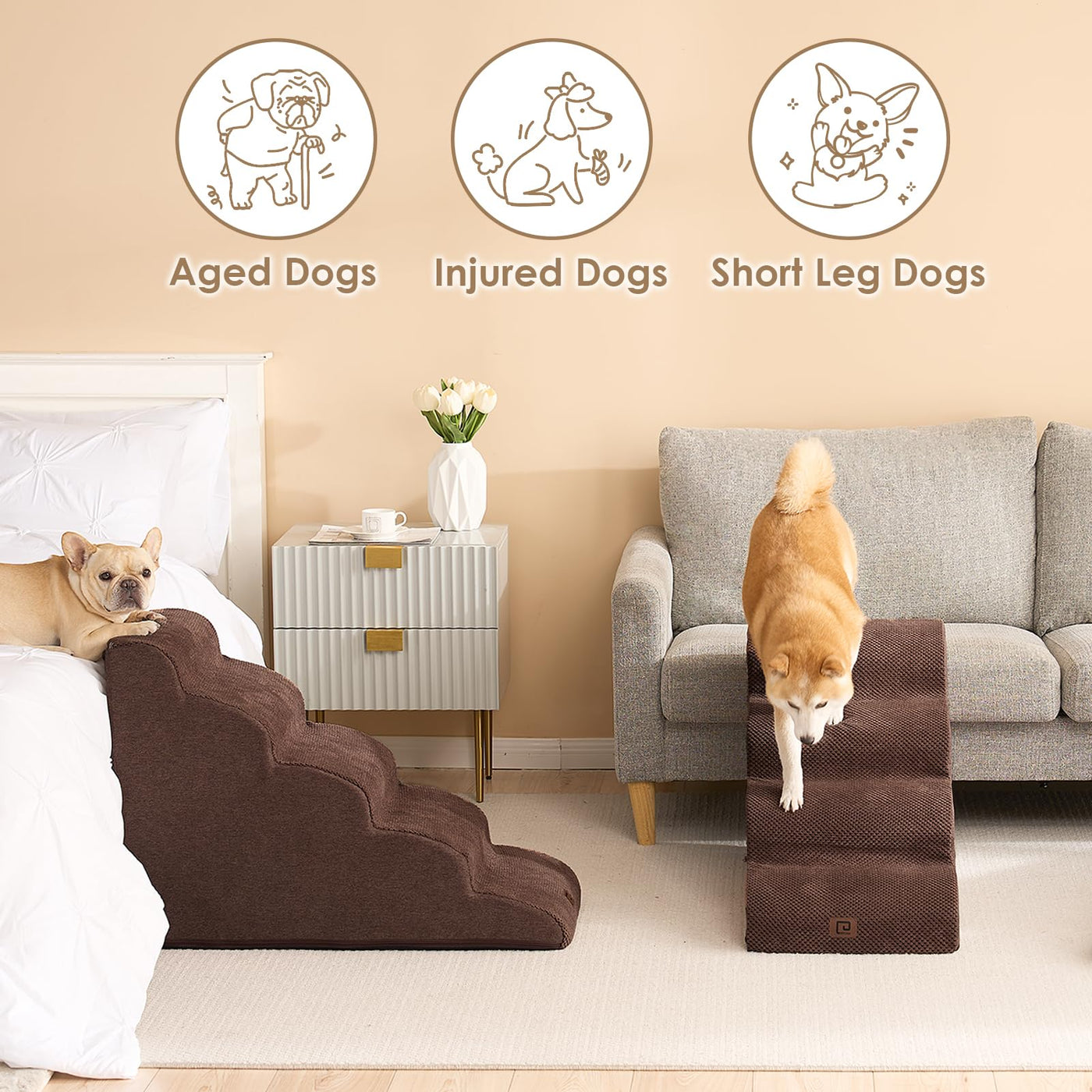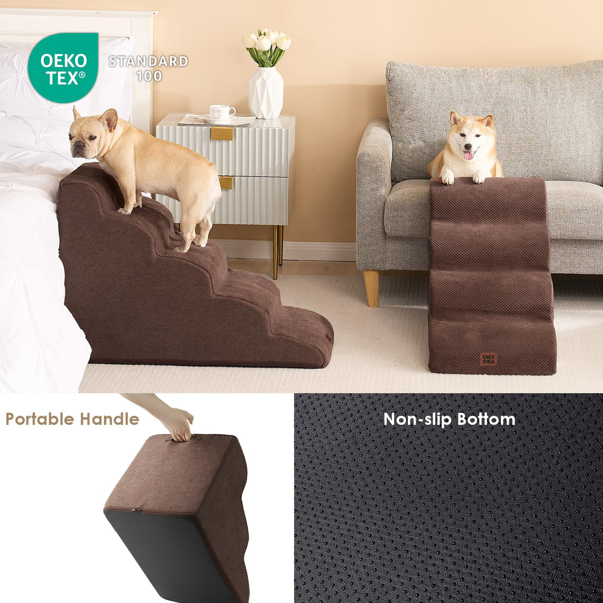 Eheyciga Curved Dog Stairs Ramp For High Beds 19.7' H, 4-Step Dog Steps For Small Dogs And Cats, Pet Stairs For High Bed Climbing, Non-Slip Balanced Pet Step Indoor, Brown