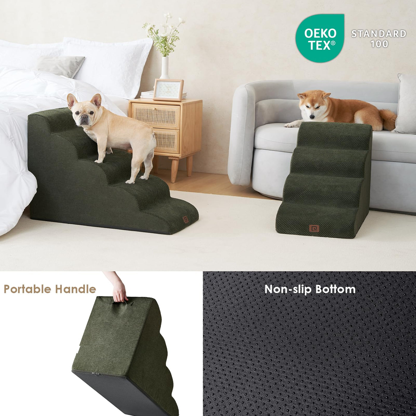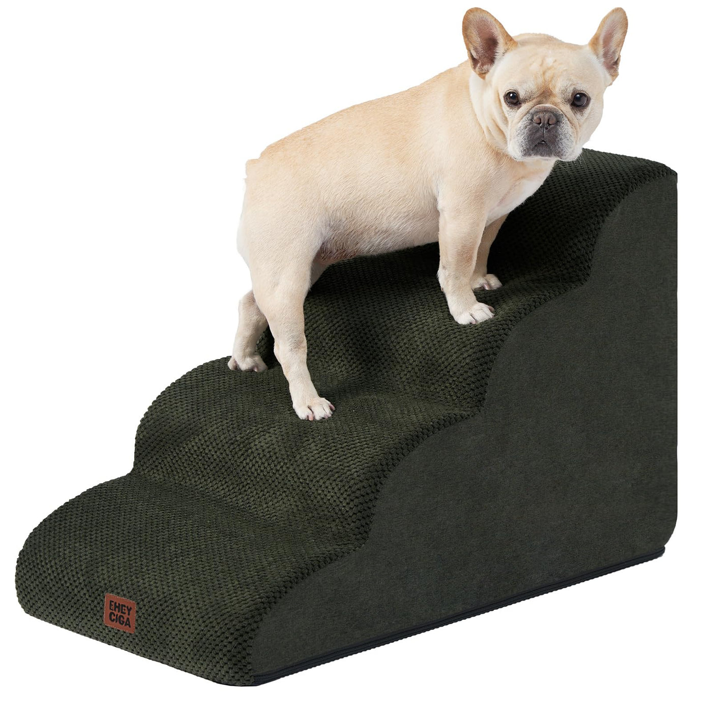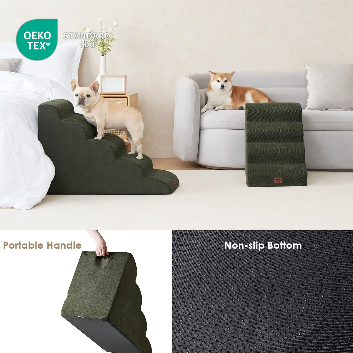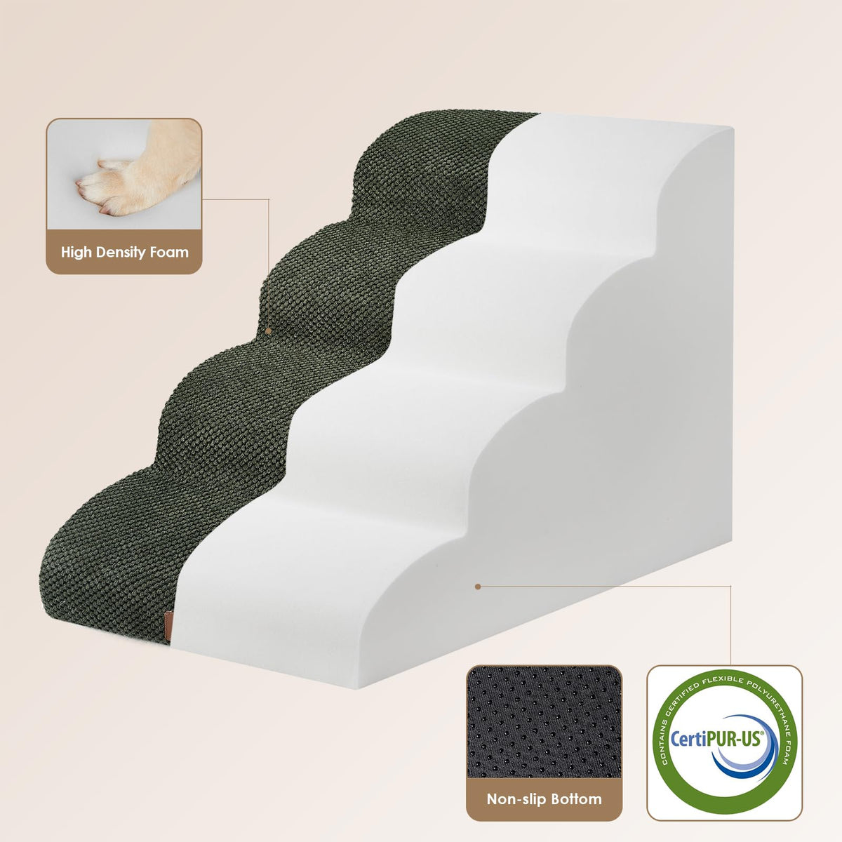 Eheyciga Curved Dog Stairs Ramp For High Beds 19.7' H, 4-Step Dog Steps For Small Dogs And Cats, Pet Stairs For High Bed Climbing, Non-Slip Balanced Pet Step Indoor, Olive Green