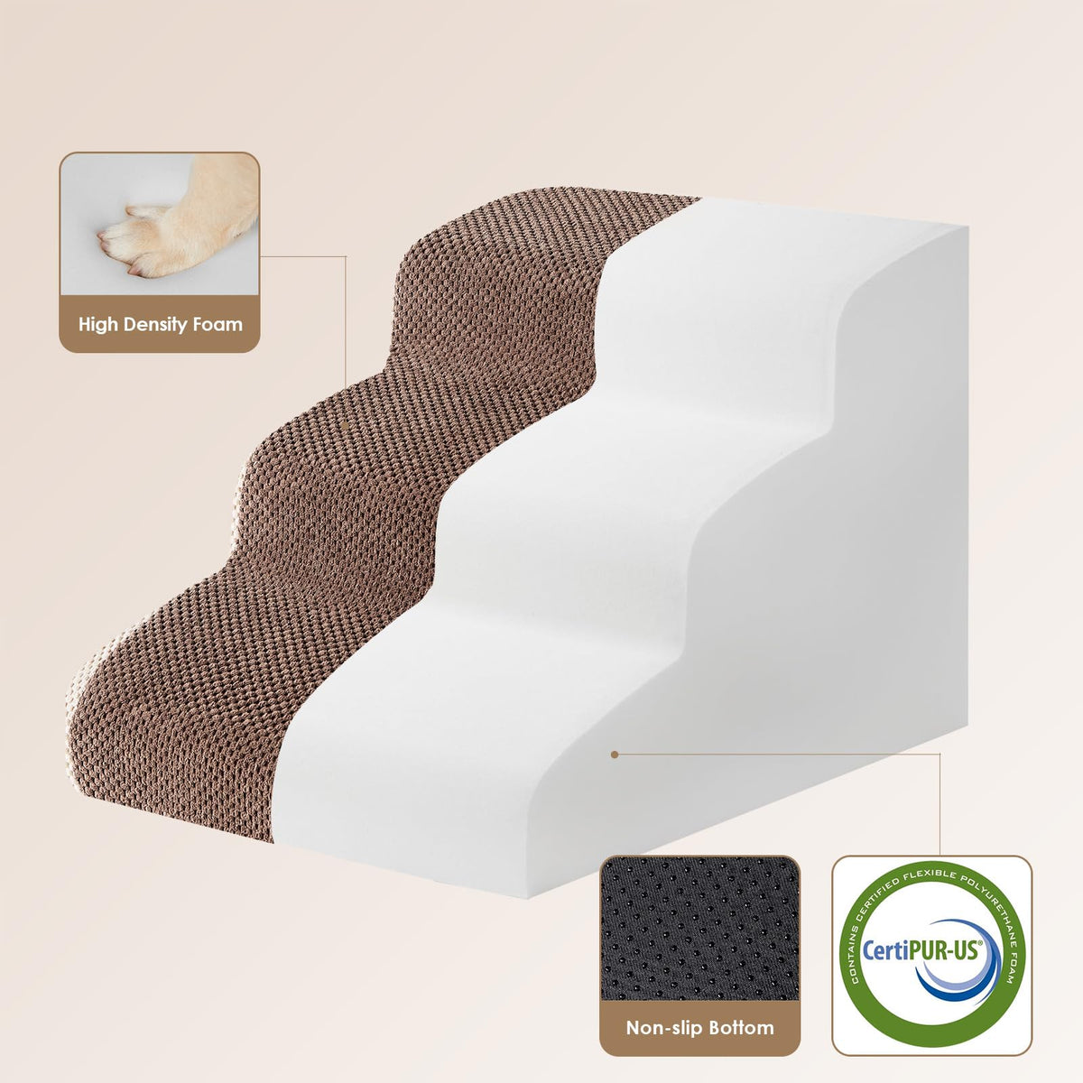 Eheyciga Curved Dog Stairs Ramp For Small Dogs 15.7'' H, 3-Step Dog Steps For Couch Sofa And Chair, Pet Stairs For Cats, Non-Sli