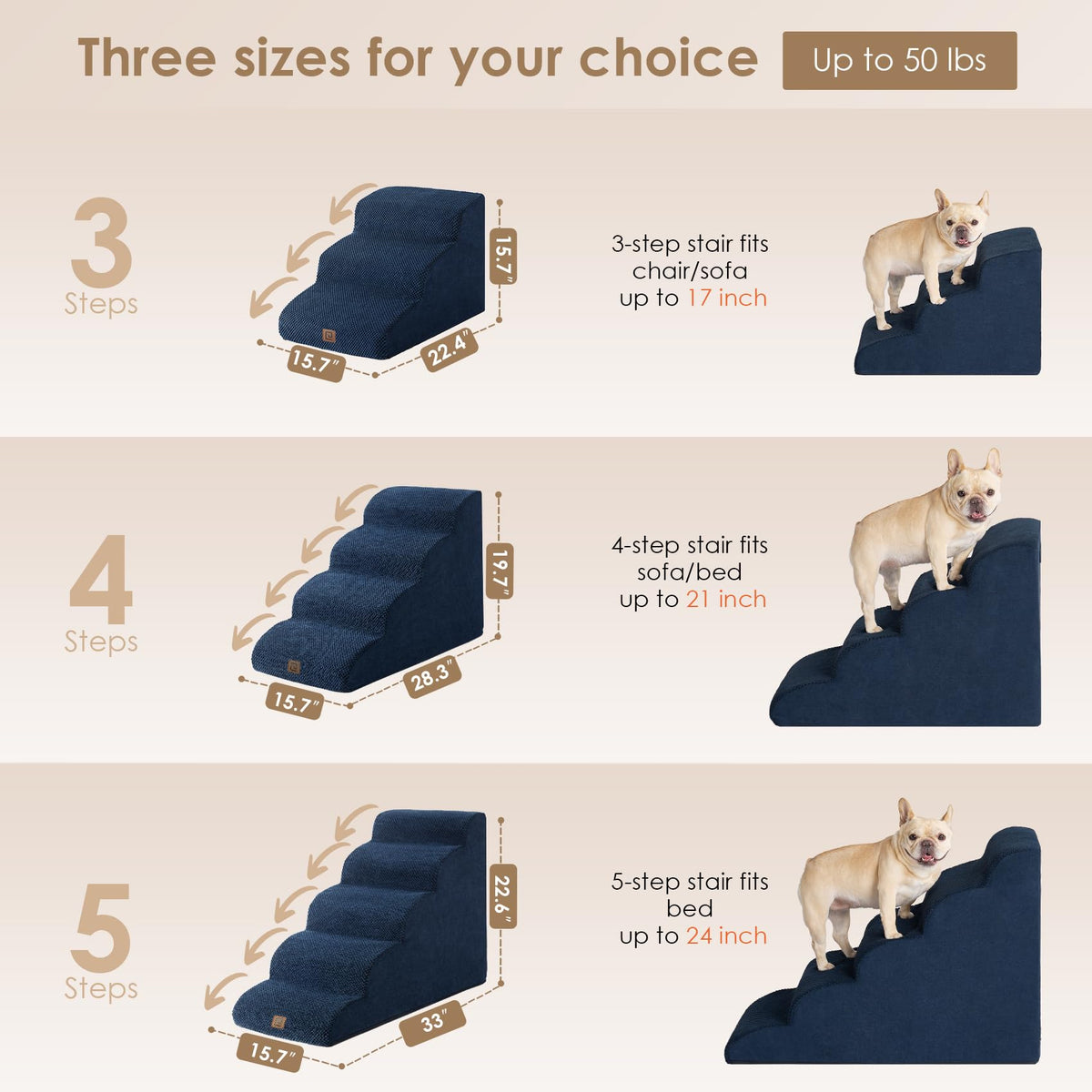 Eheyciga Curved Dog Stairs Ramp For Small Dogs 15.7' H, 3-Step Dog Steps For Couch Sofa And Chair, Pet Stairs For Cats, Non-Slip Balanced Pet Steps Indoor, Navy