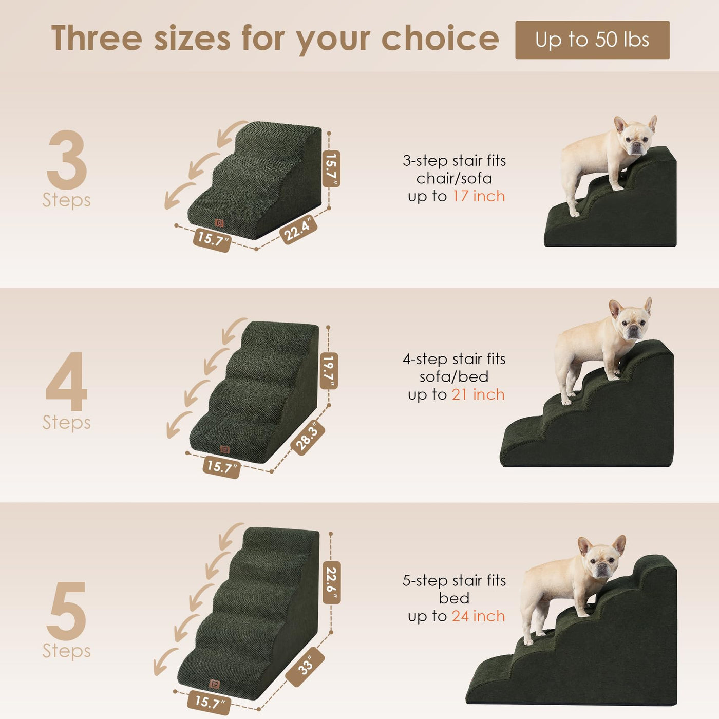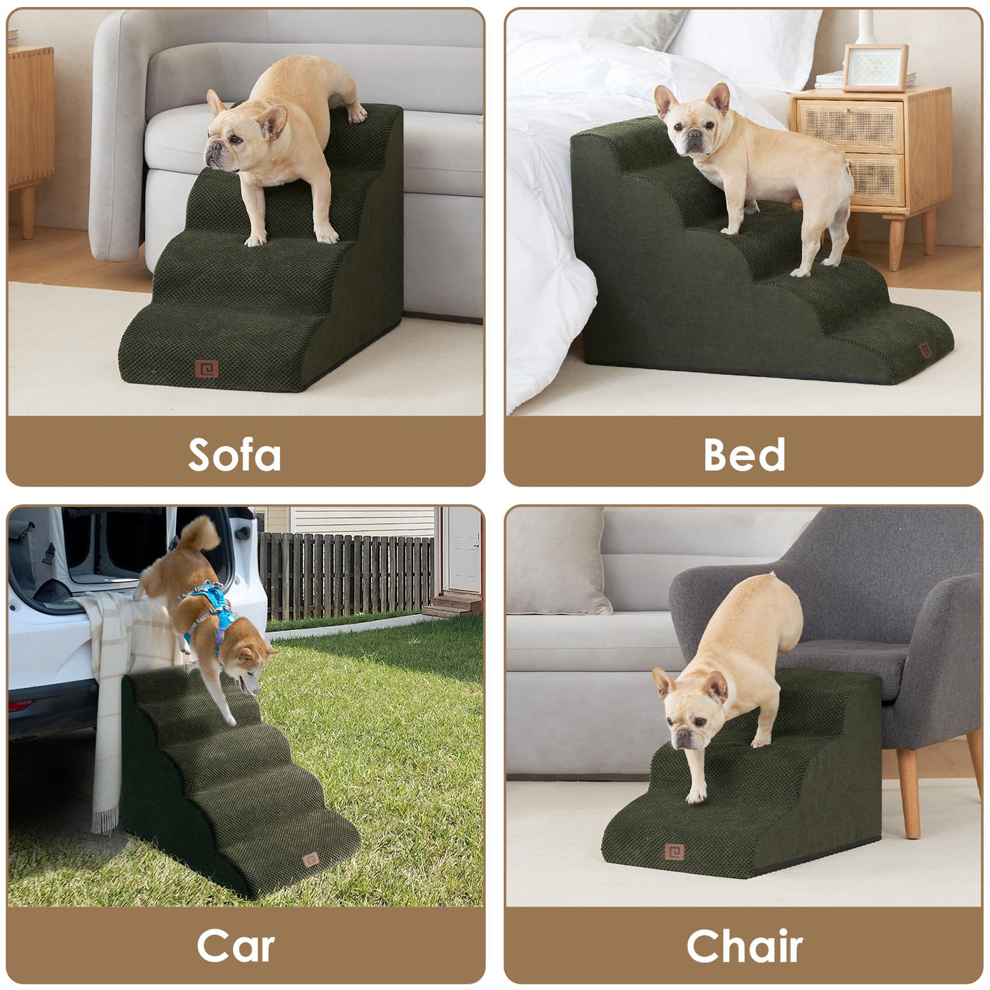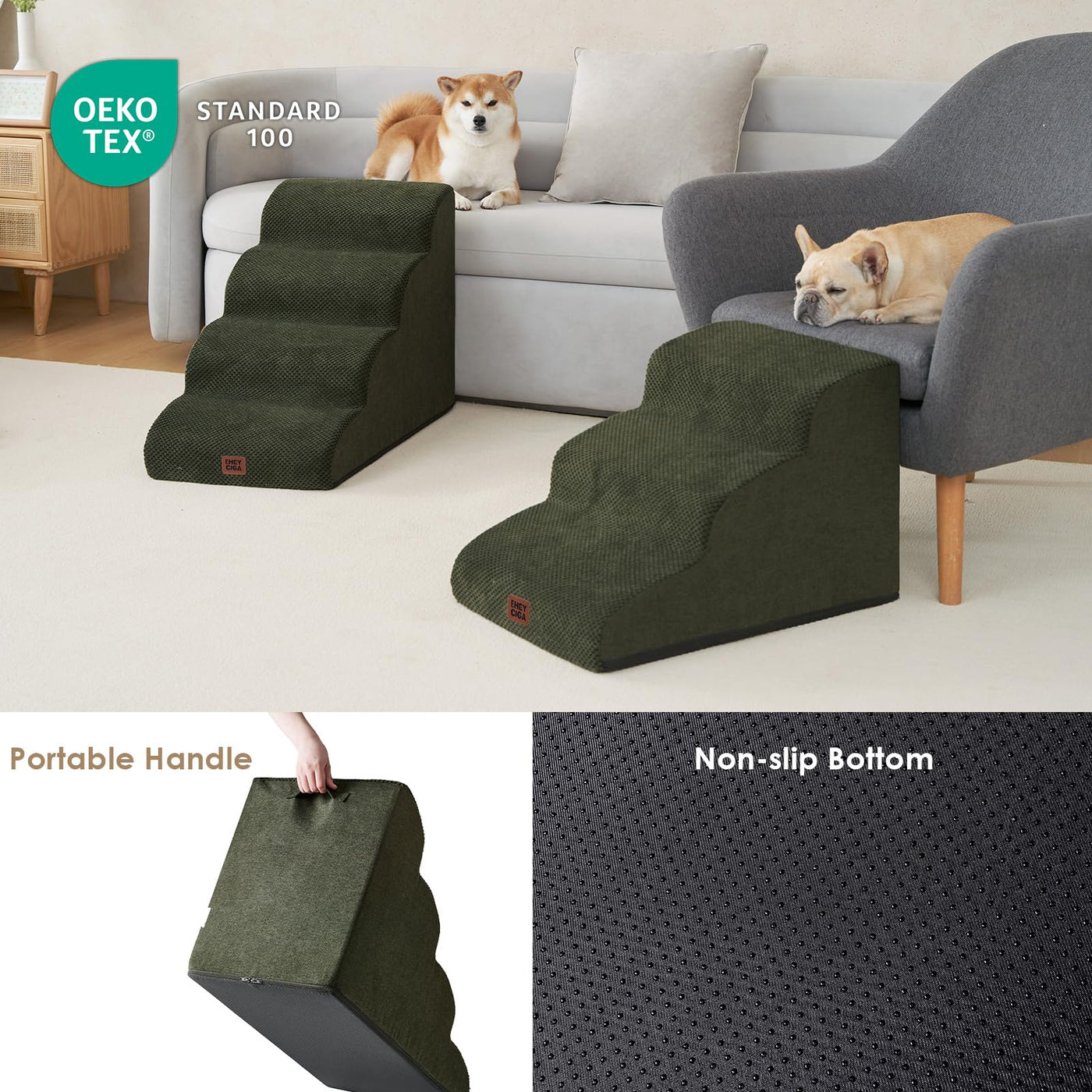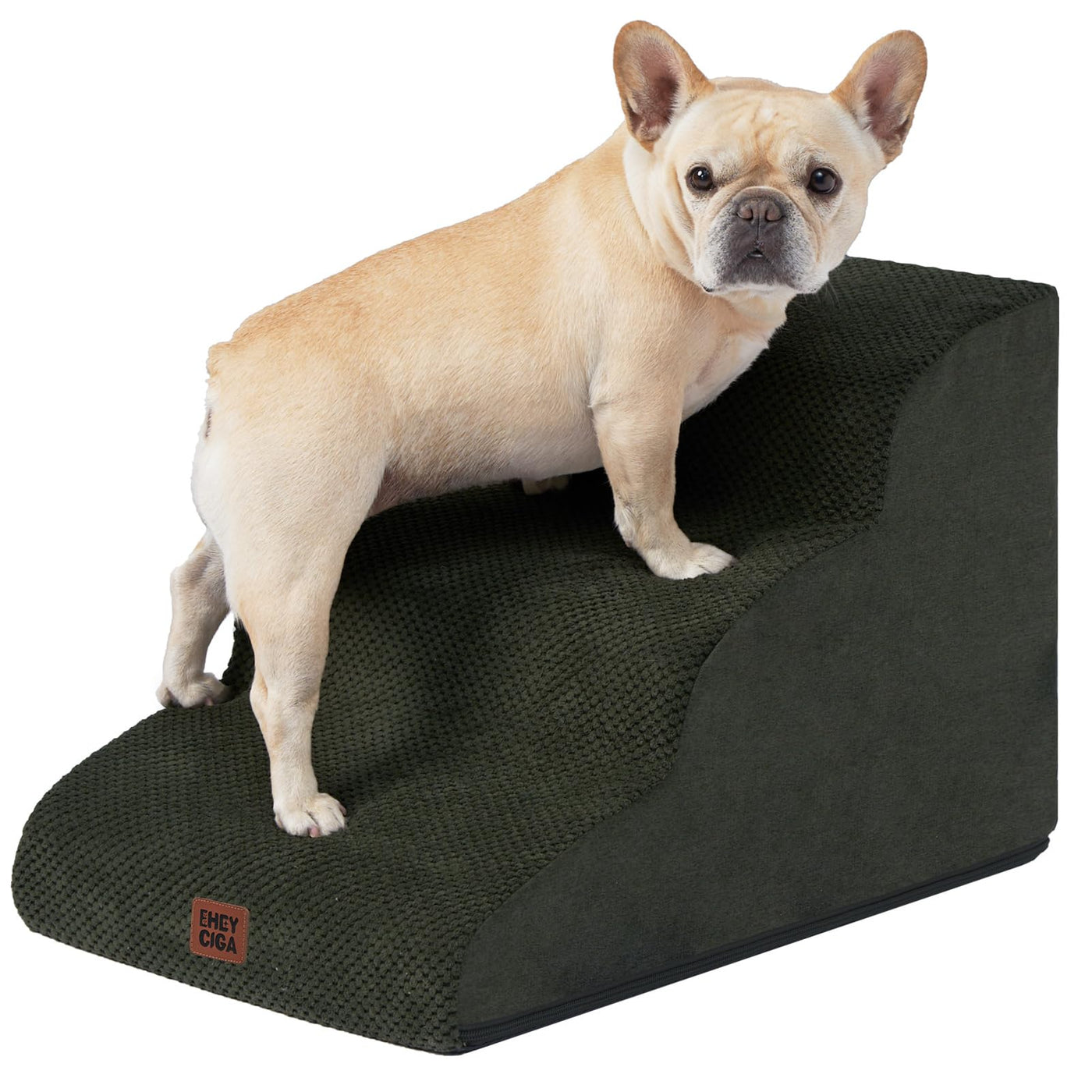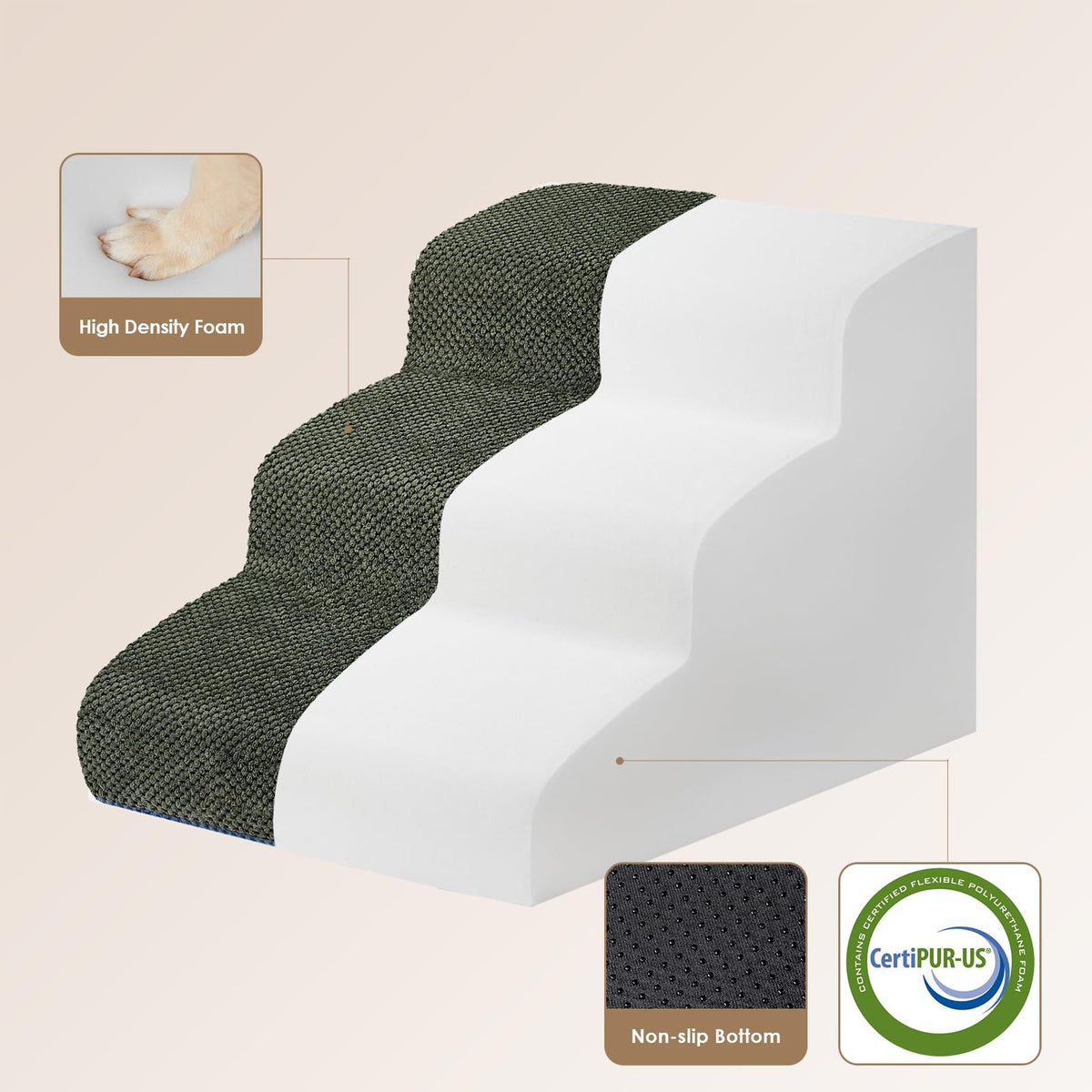 Eheyciga Curved Dog Stairs Ramp For Small Dogs 15.7' H, 3-Step Dog Steps For Couch Sofa And Chair, Pet Stairs For Cats, Non-Slip Balanced Pet Steps Indoor, Olive Green