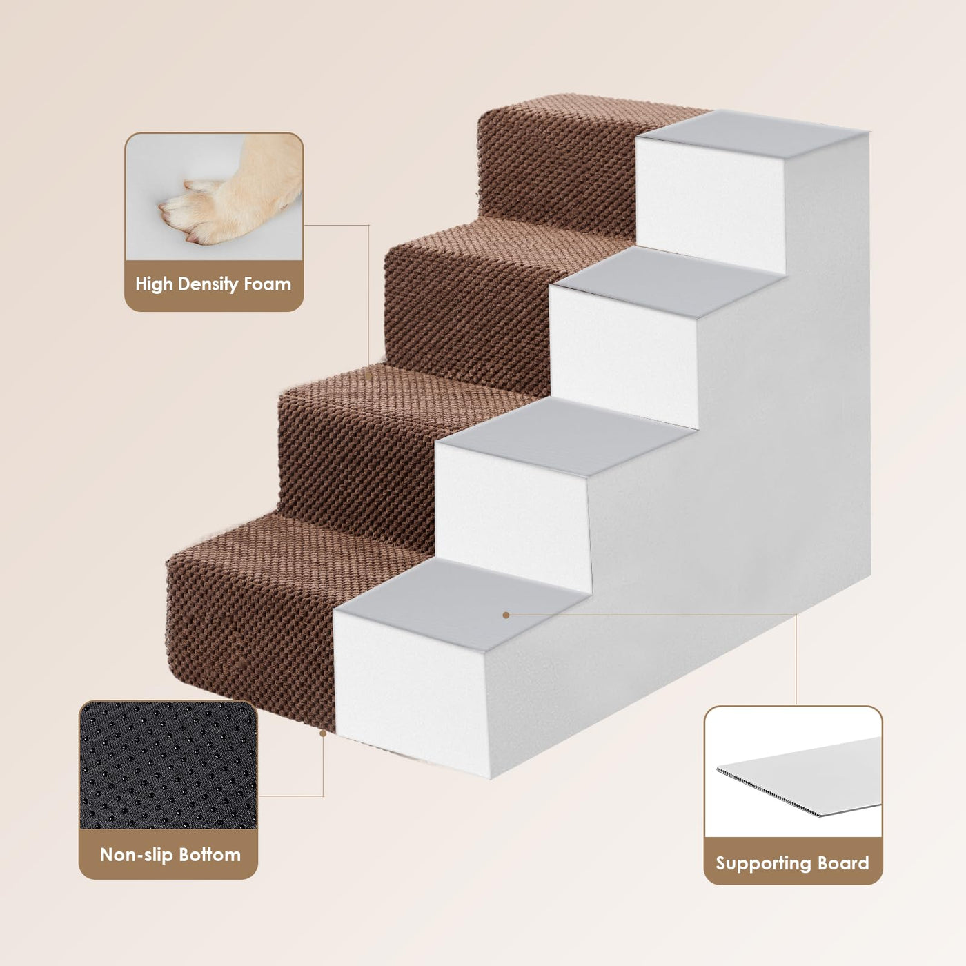 Eheyciga Dog Stairs For Bed 18”H, 4-Step Dog Steps For High Bed, Pet Steps For Small Dogs And Cats, Non-Slip Balanced Dog Indoor Ramp, Brown