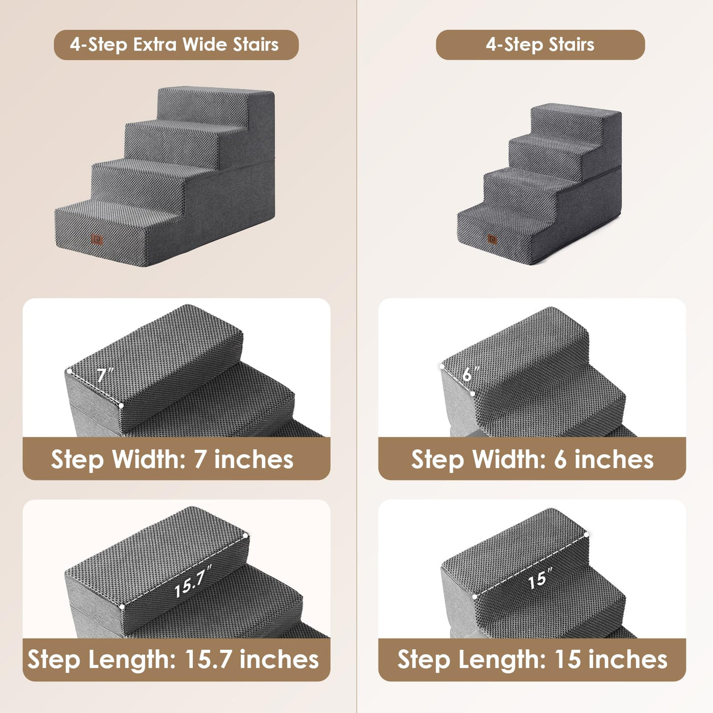 Eheyciga Dog Stairs For Bed 18”H, 4-Step Extra Wide Dog Steps For High Bed, Pet Steps For Small Dogs And Cats, Non-Slip Balanced Dog Indoor Ramp, Grey