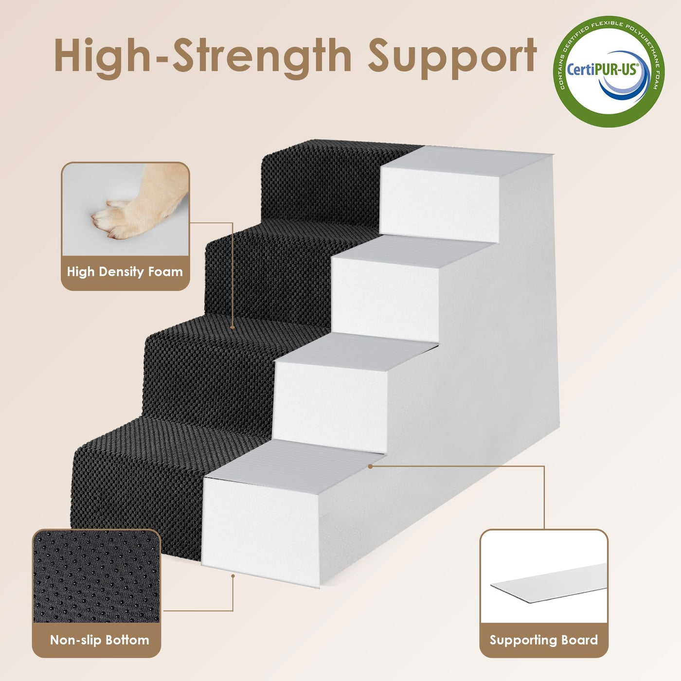 Eheyciga Dog Stairs For Bed 20”H, 4-Step Extra Wide Dog Steps For High Bed, Pet Steps For Small Dogs And Cats, Non-Slip Balanced Dog Indoor Ramp, Black
