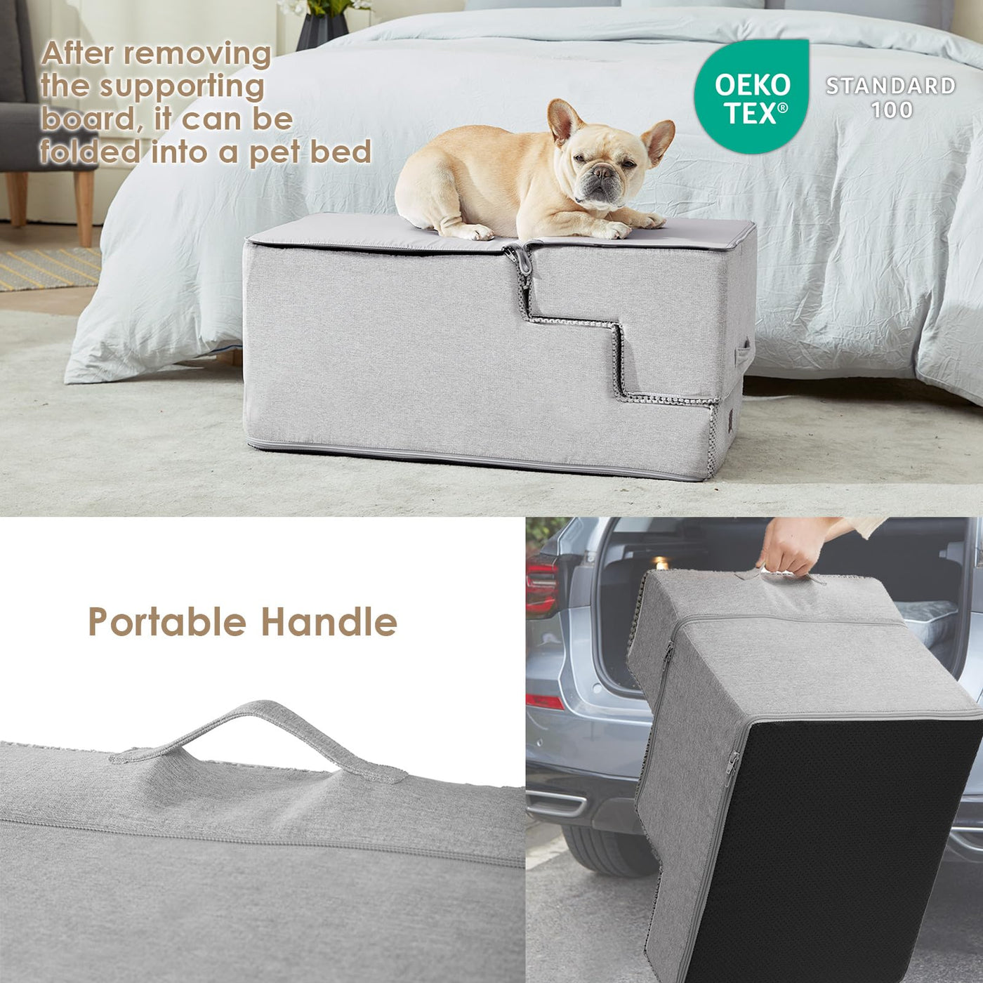 Q: Can I fold the EHEYCIGA Dog Stairs for storage?A: Yes, the EHEYCIGA Dog Stairs can be easily folded into a basic dog bed, which is a great space-saving feature and allows for easy transport.